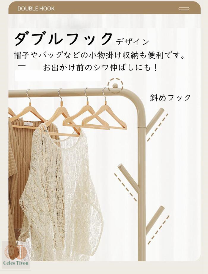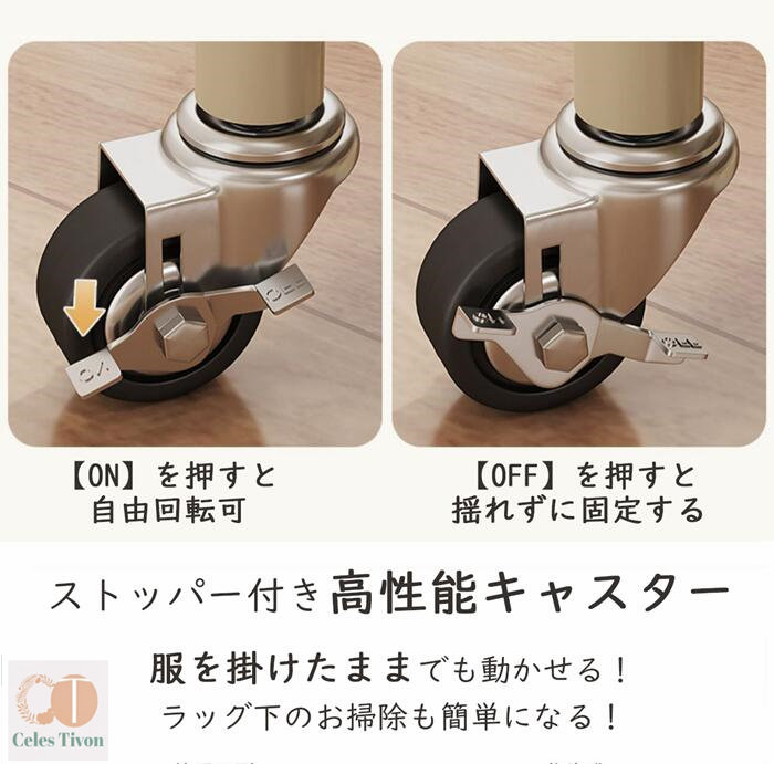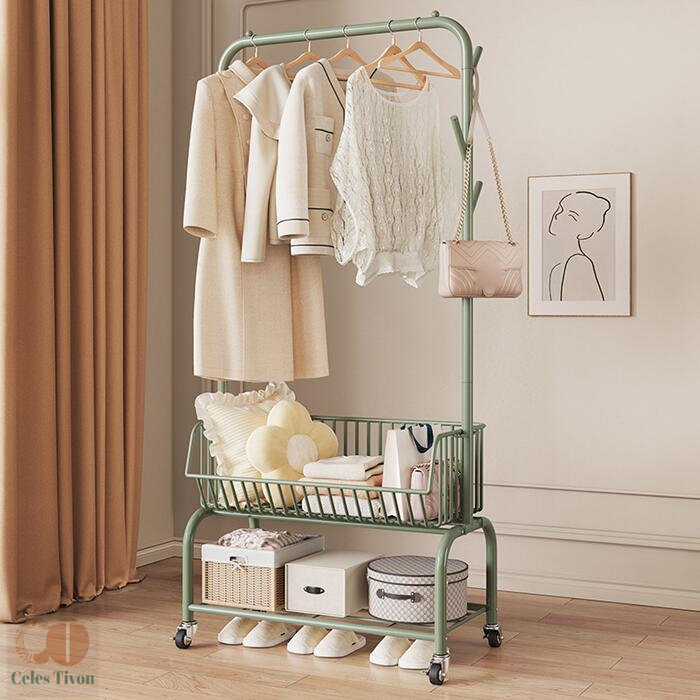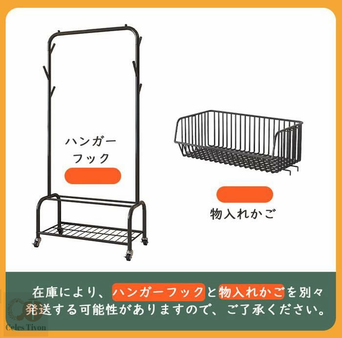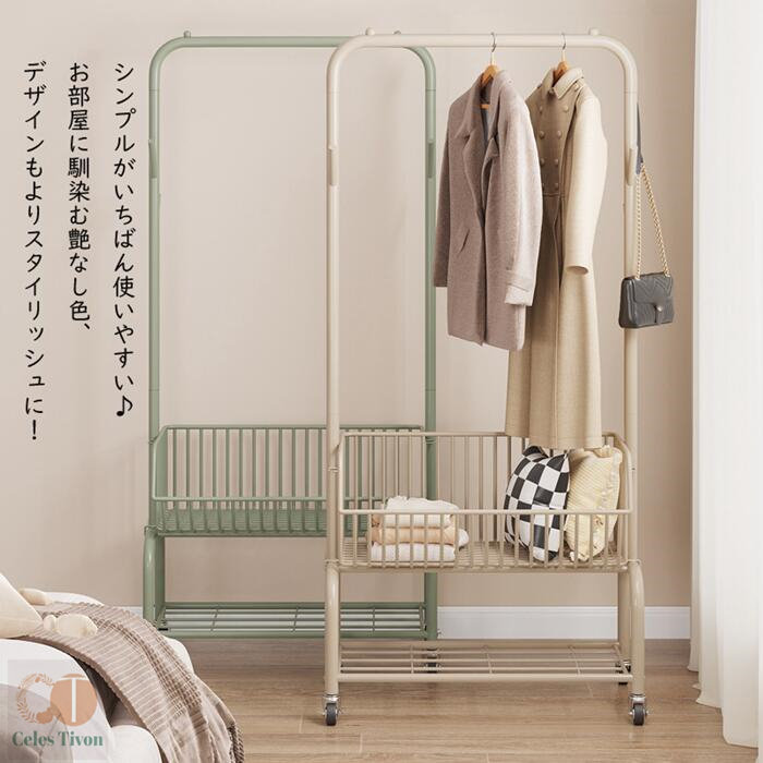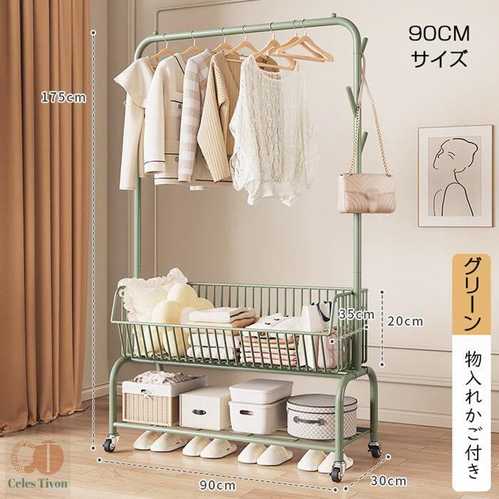 ハンガーフック 物入れかご付き キャス グリーン オフホワイト オフホワイト(かごなし) グリーン(かごなし) M(幅60CM) L(幅90CM)