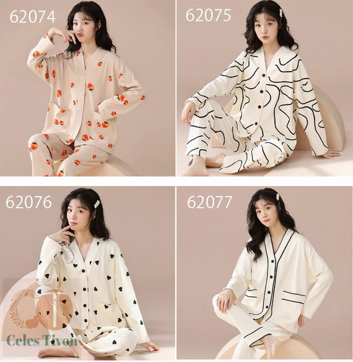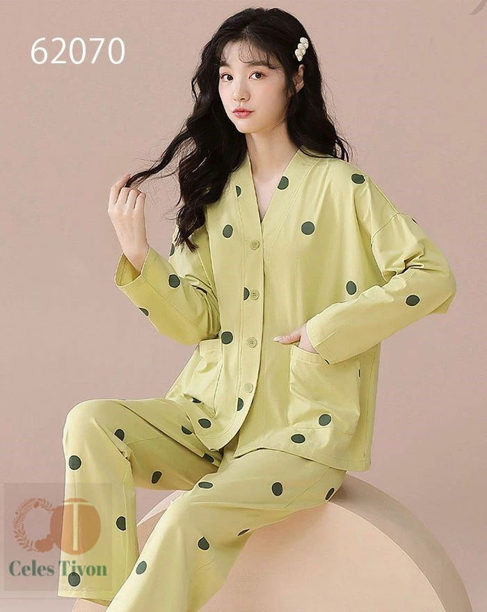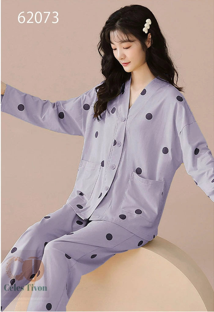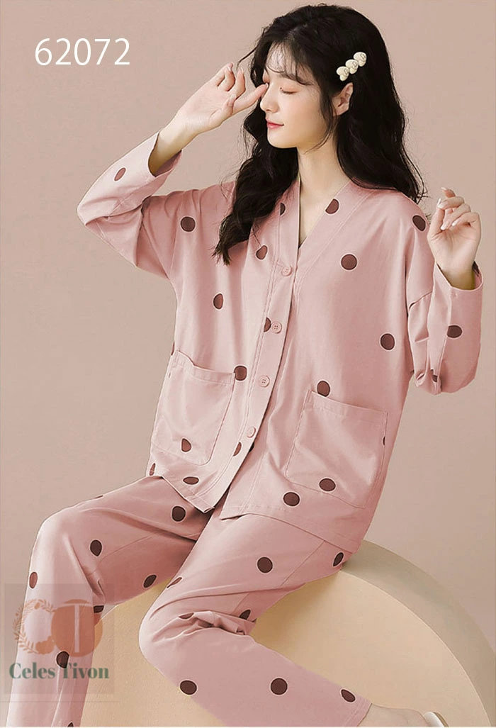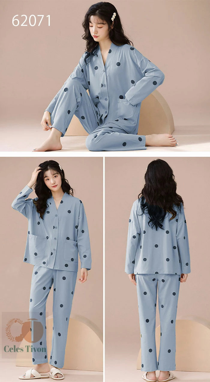ルームウエア綿100%前開きドット柄水 レディース ナイトウェア ルームウェア ルームウェア 上下セット 人気 62070 62071 62072 62073 62074 62075 62076 62077 M L XL 2XL 3XL