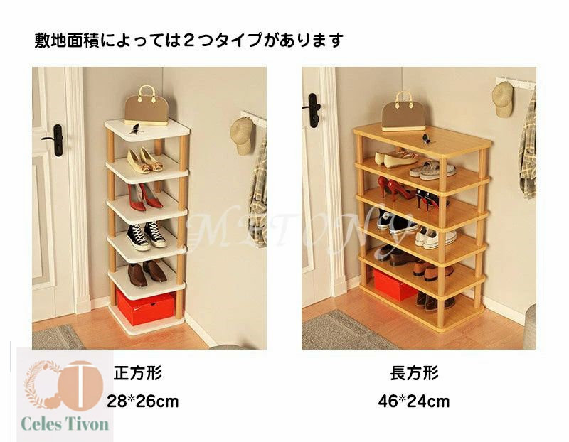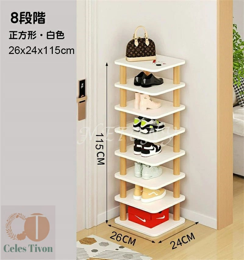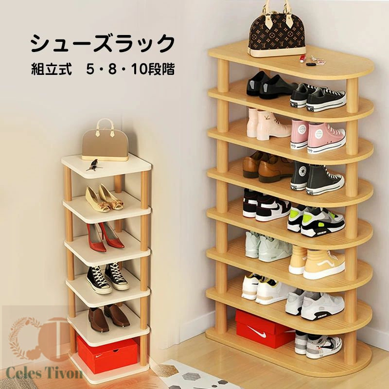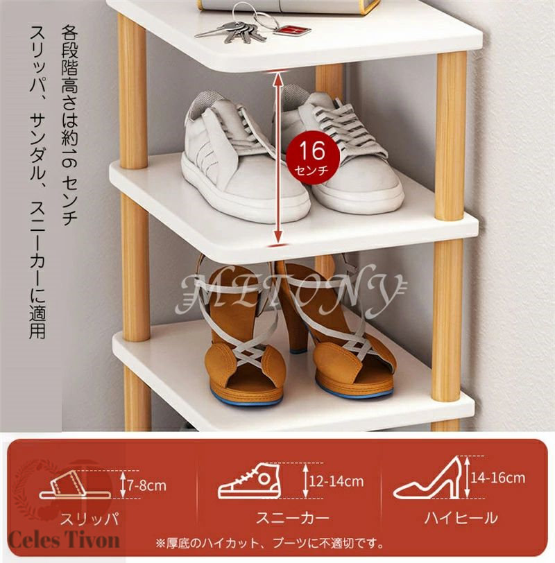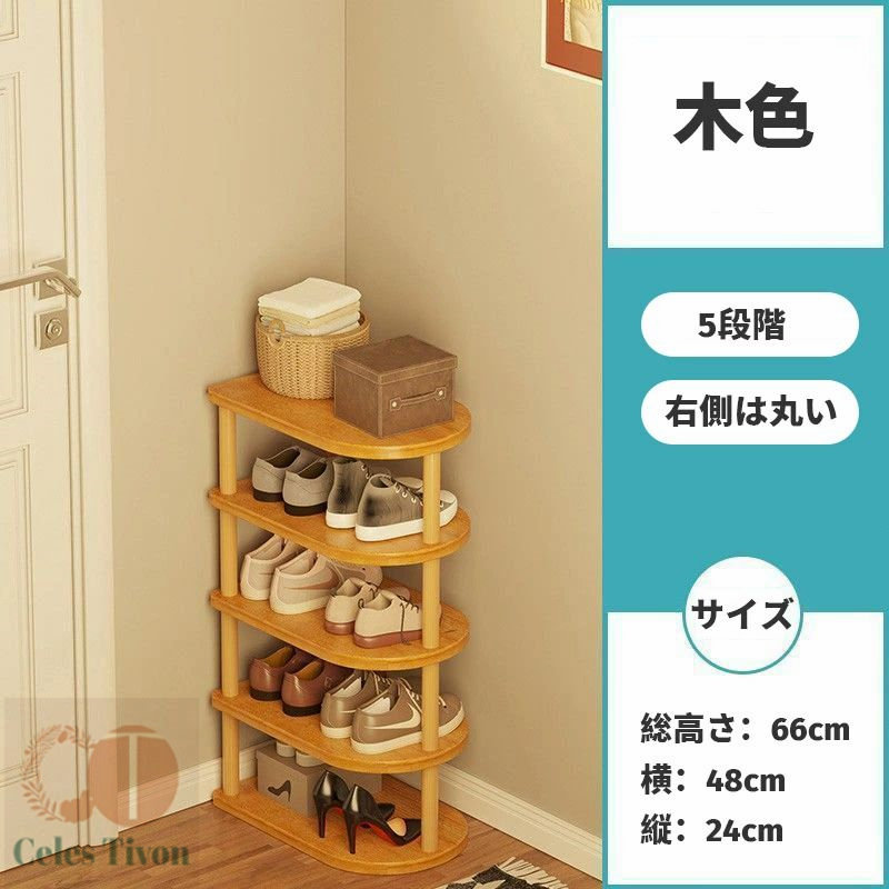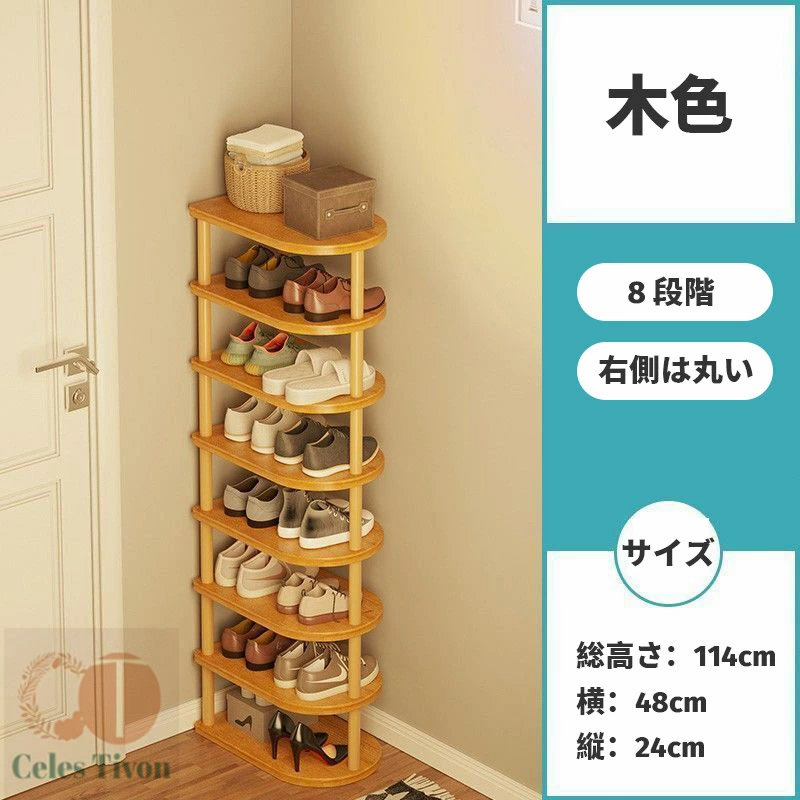 隙間収納 靴 収納 スリム 靴箱 省ス 正方形 白&木色 右側丸い 木色 5段階 8段階