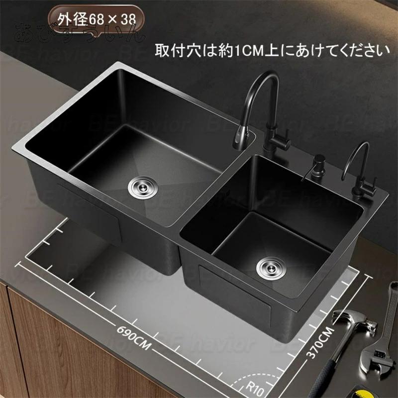 シンク ステンレス 二槽シンク 流し台 セット1(蛇口なし) セット2(標準蛇口) セット3(伸びる蛇口) 68×38cm【在庫切れ!!】 72×40cm 75×40cm 78×43cm 81×43cm 82×45cm 了解致しました。