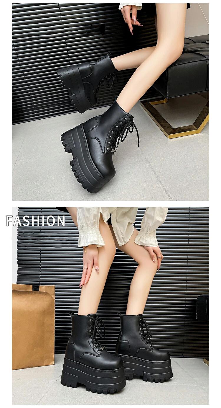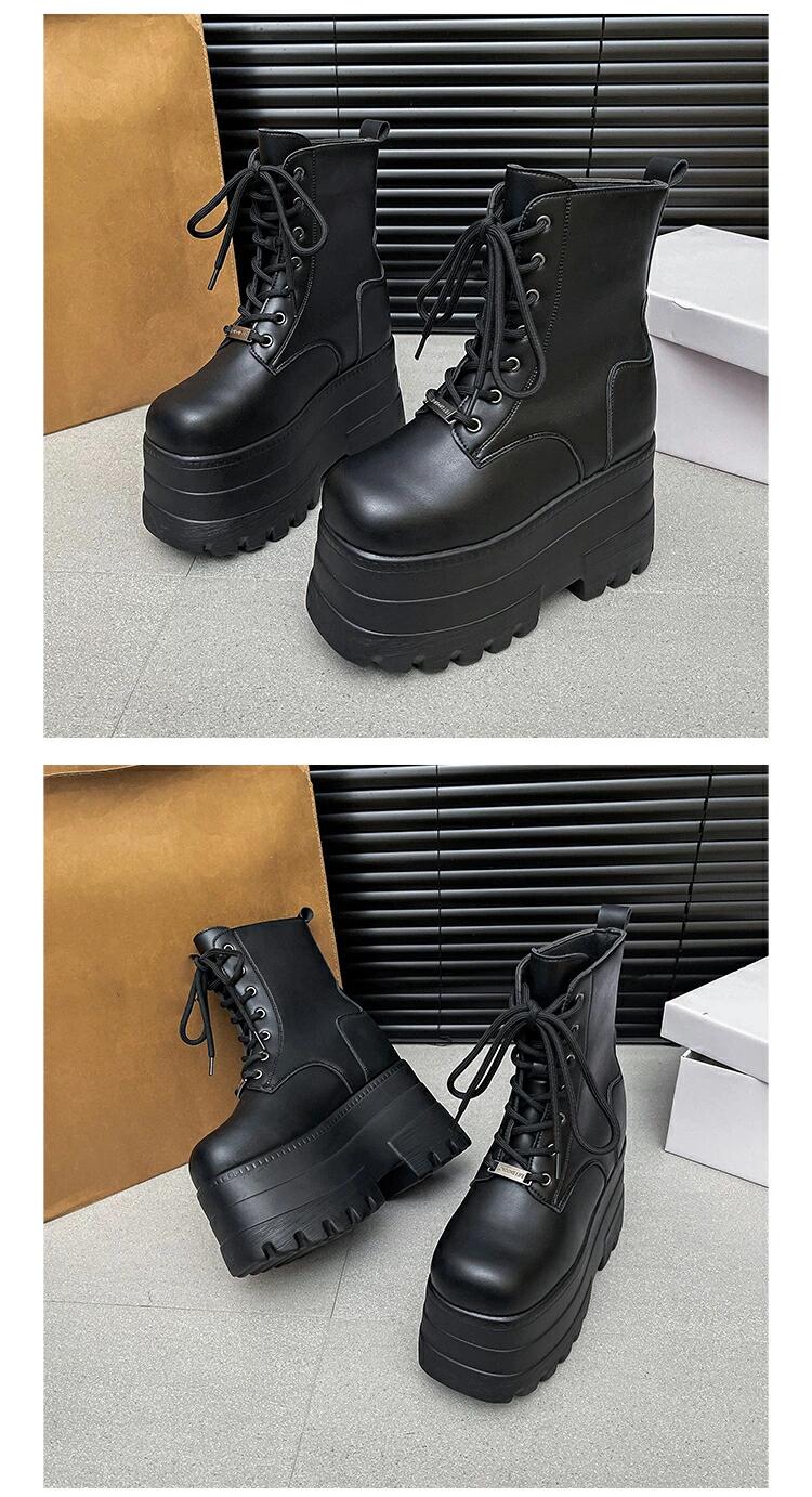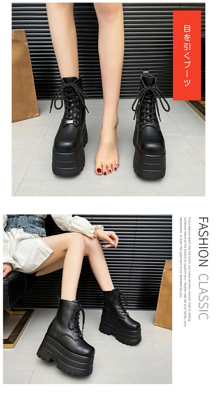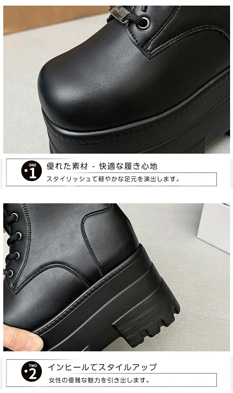 厚底ブーツ 13cm 身長up ショートブーツ レースアップ レディース PUレザー 靴 厚底靴 ワークブーツ 編み上げ 締め上げ 目立つ カジュアル ハイカット ハイヒール 太ヒール 美脚 可愛い 軽量 通勤 通学 コスプレ 保温 秋冬 ライブ きれいめ コスプレ 黒 ブラック 歩きやすい 履きやすい 大きサイズ