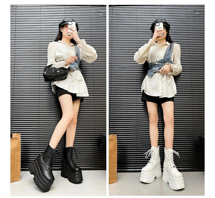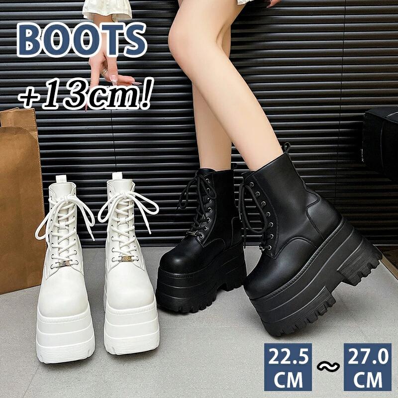 厚底ブーツ 13cm 身長up ショー 靴 人気 ブラック ホワイト 22.5-23CM 23.5-24CM 24.5-25CM 25.5-26CM 26.5-27CM