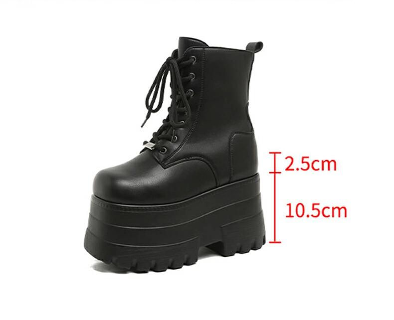 厚底ブーツ 13cm 身長up ショートブーツ レースアップ レディース PUレザー 靴 厚底靴 ワークブーツ 編み上げ 締め上げ 目立つ カジュアル ハイカット 太ヒール 美脚 可愛い ハイヒール
