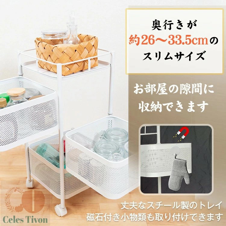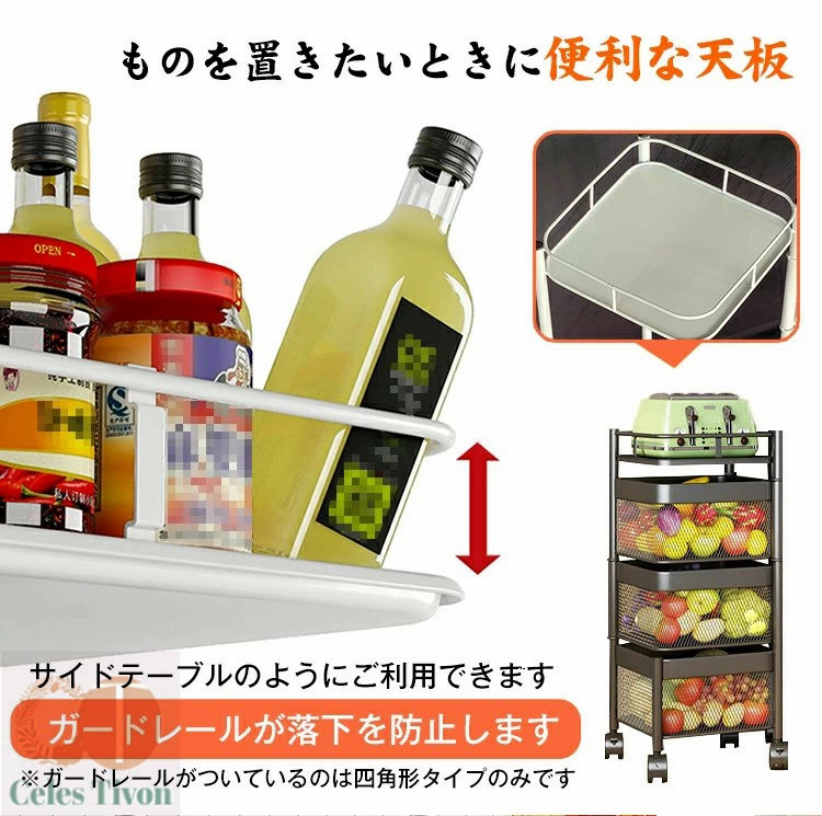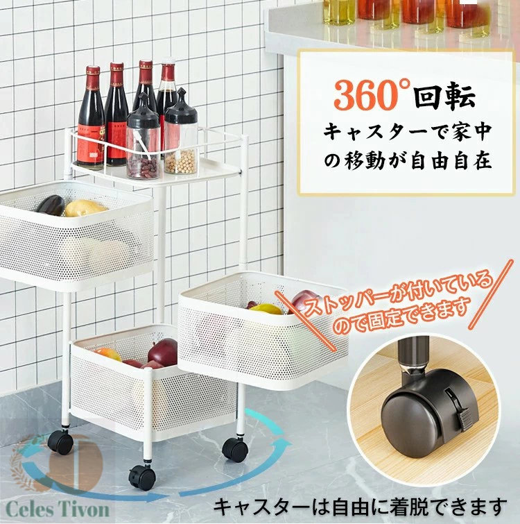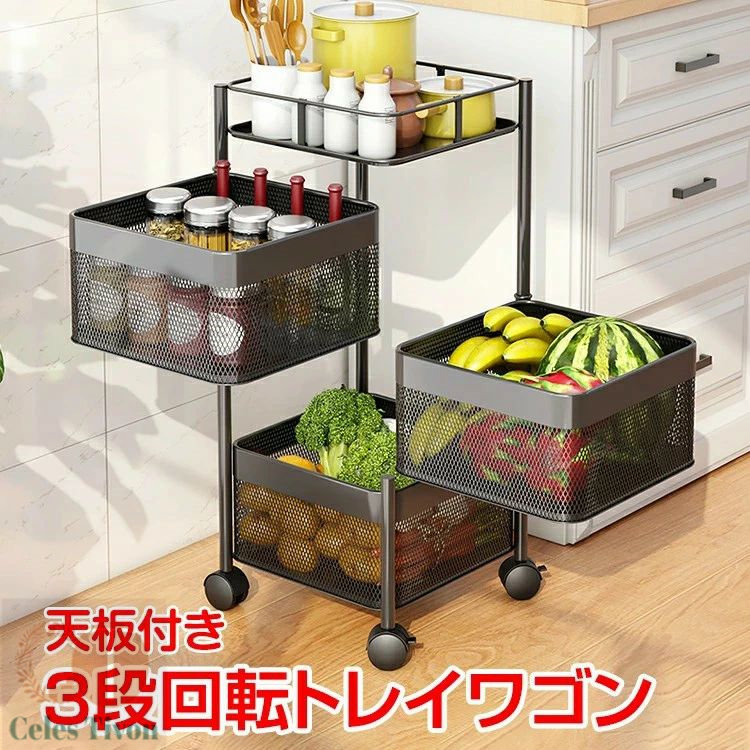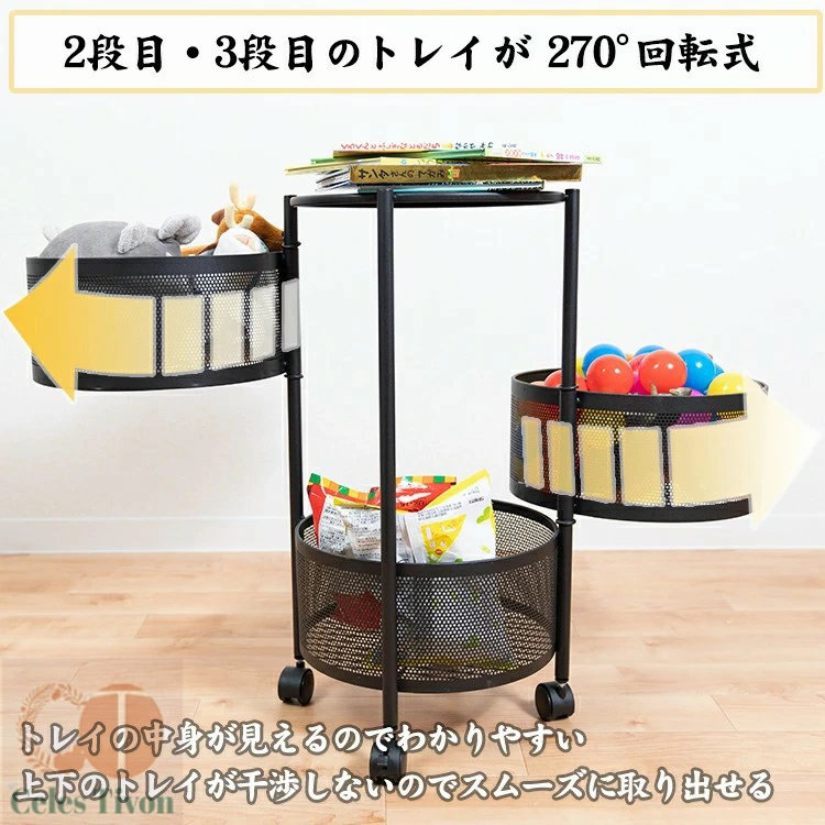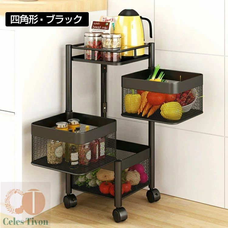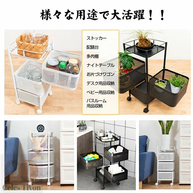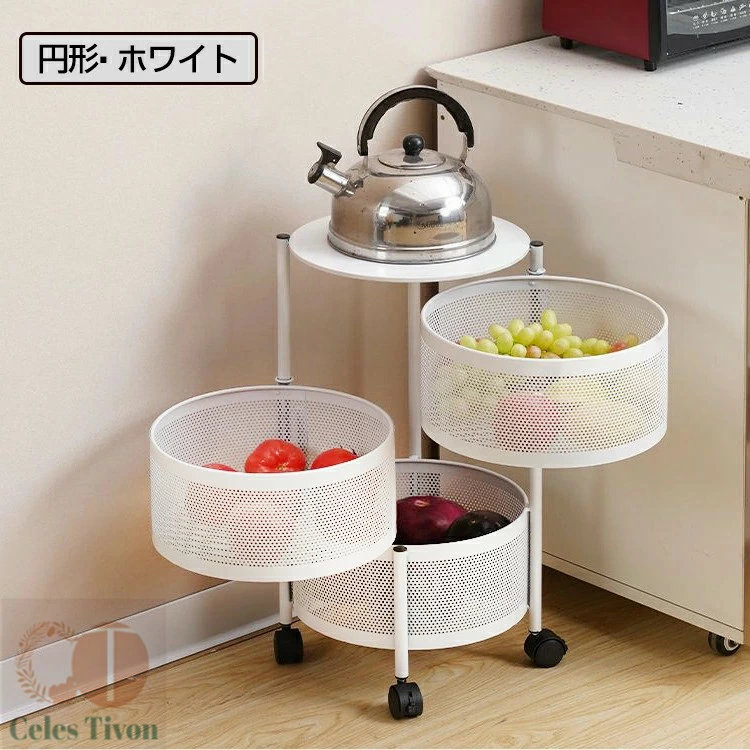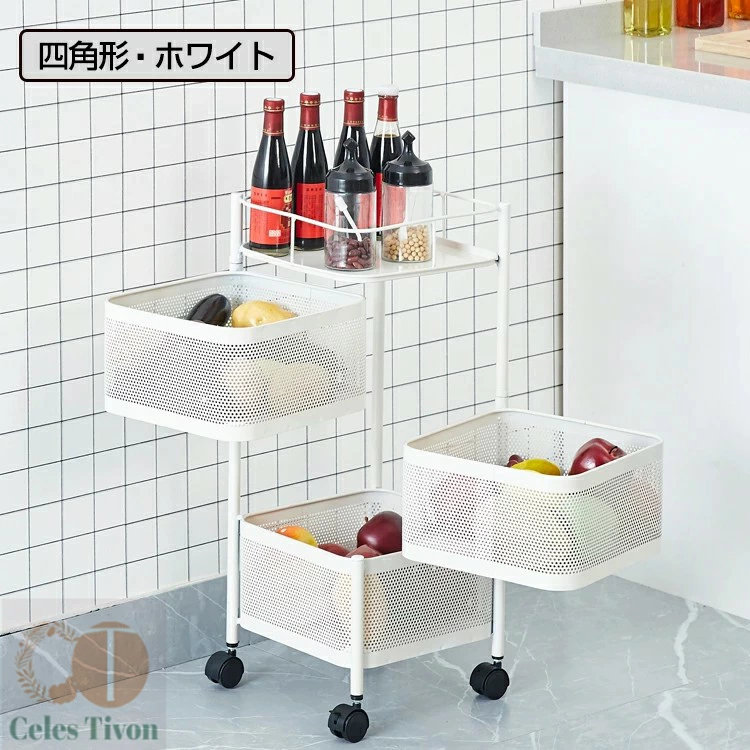 キッチンワゴン キャスター付き 回転 ブラック ホワイト 三段-四角 三段-円形