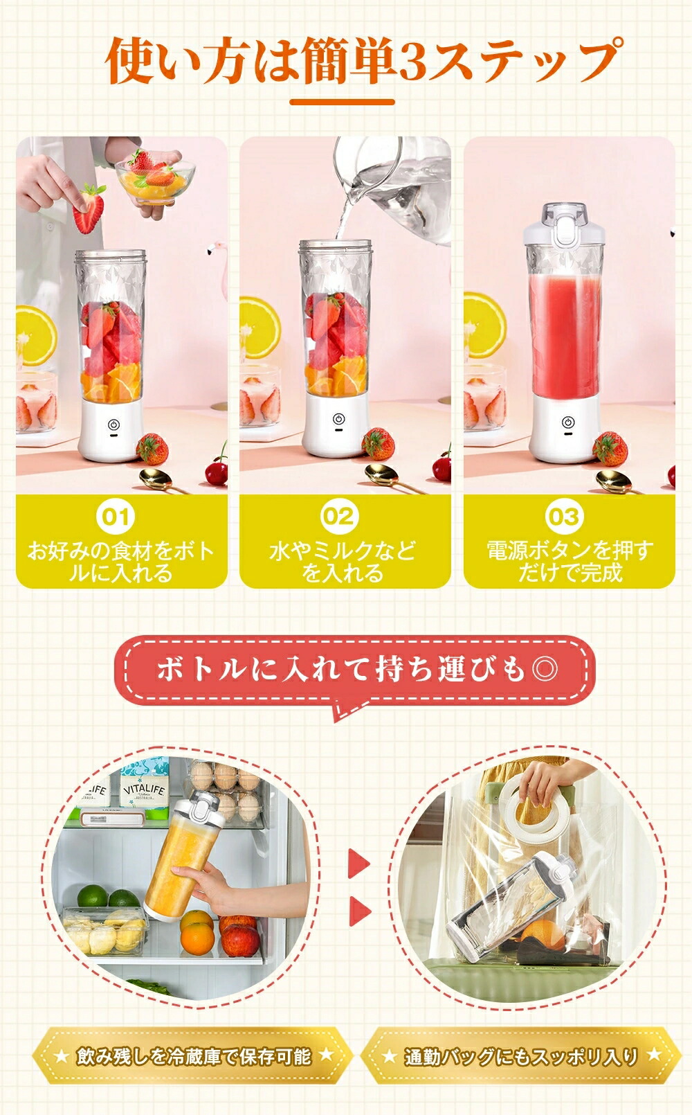 ミキサー 氷も砕ける 洗い やすい60 ブラック ホワイト ピンク パープル