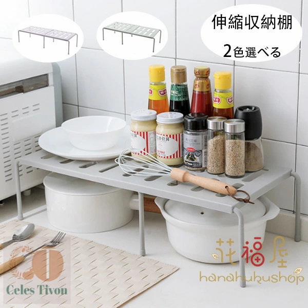 伸縮収納棚 収納ラック 食器棚 シンク ホワイト グレー