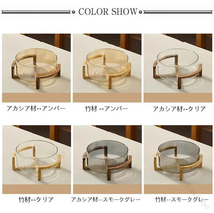 ガラス 透明 ガラスボウル フルーツボ キッチン用品 食器 調理器具 超目玉商品 クリア アンバー スモークグレー アカシア材L アカシア材M アカシア材S 竹材L 竹材M 竹材S