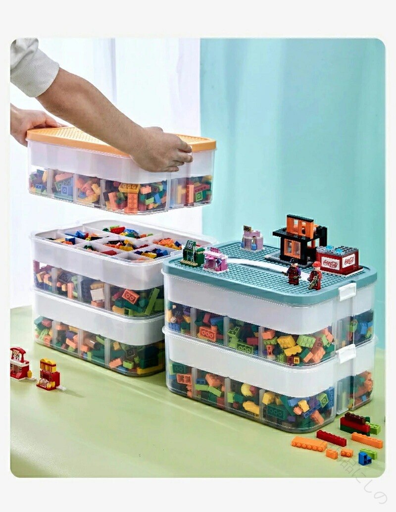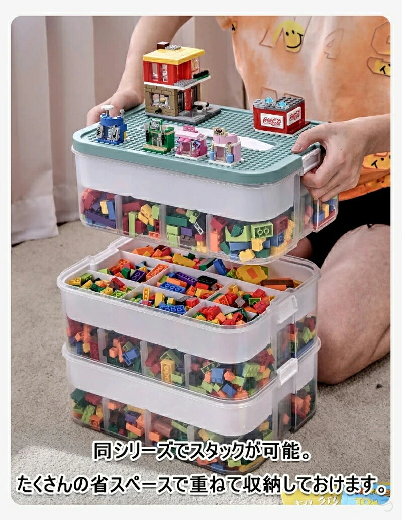 おもちゃ 収納 レゴ ブロック 大容量 グリーン イエロー 1層式 2層式 3層式