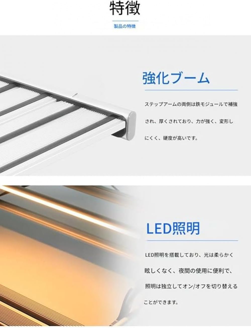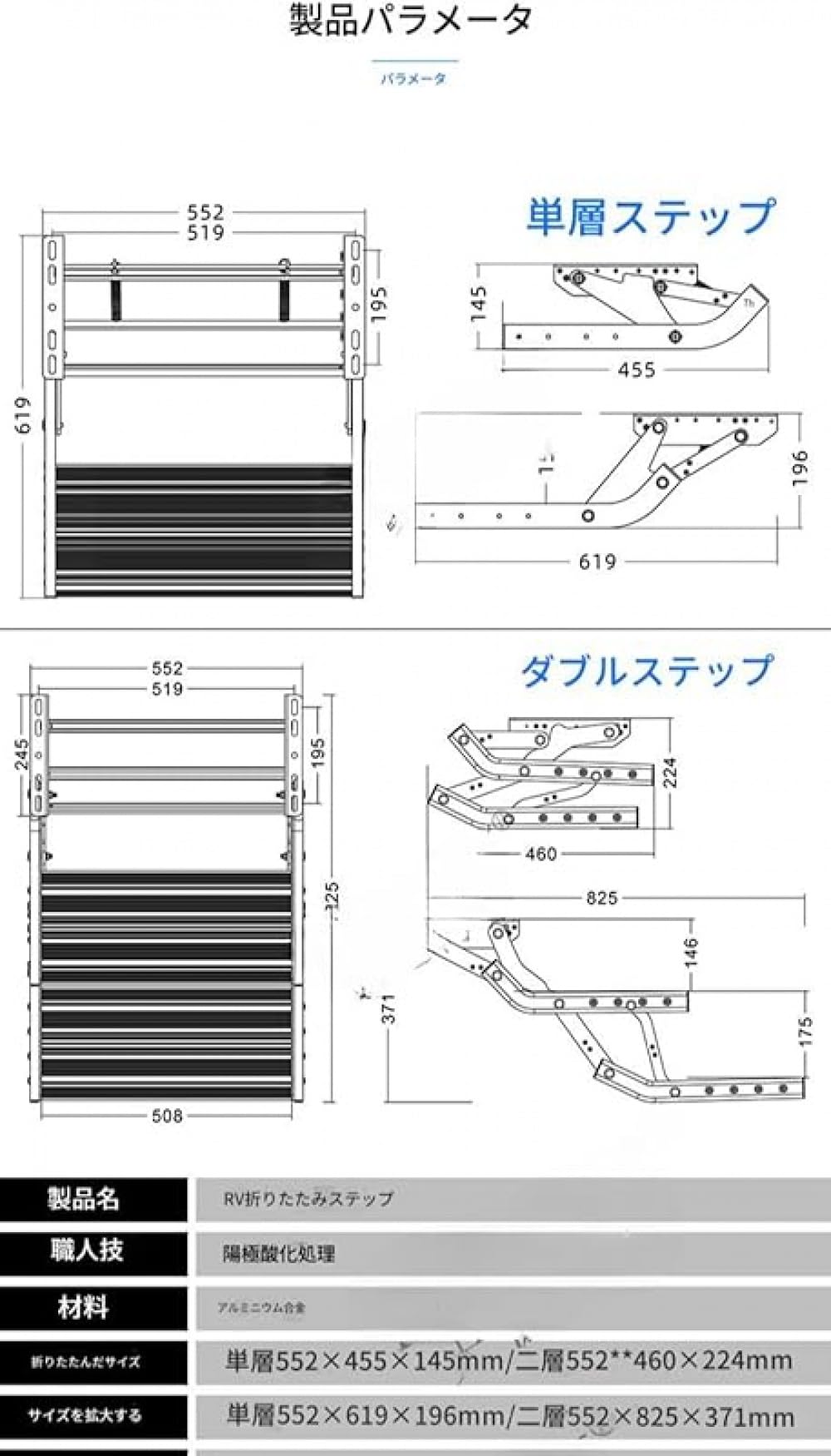 滑り止め付き折りたたみ式ドロップダウン階段 ライト搭載 トラベルトレーラー用 その他パンプス