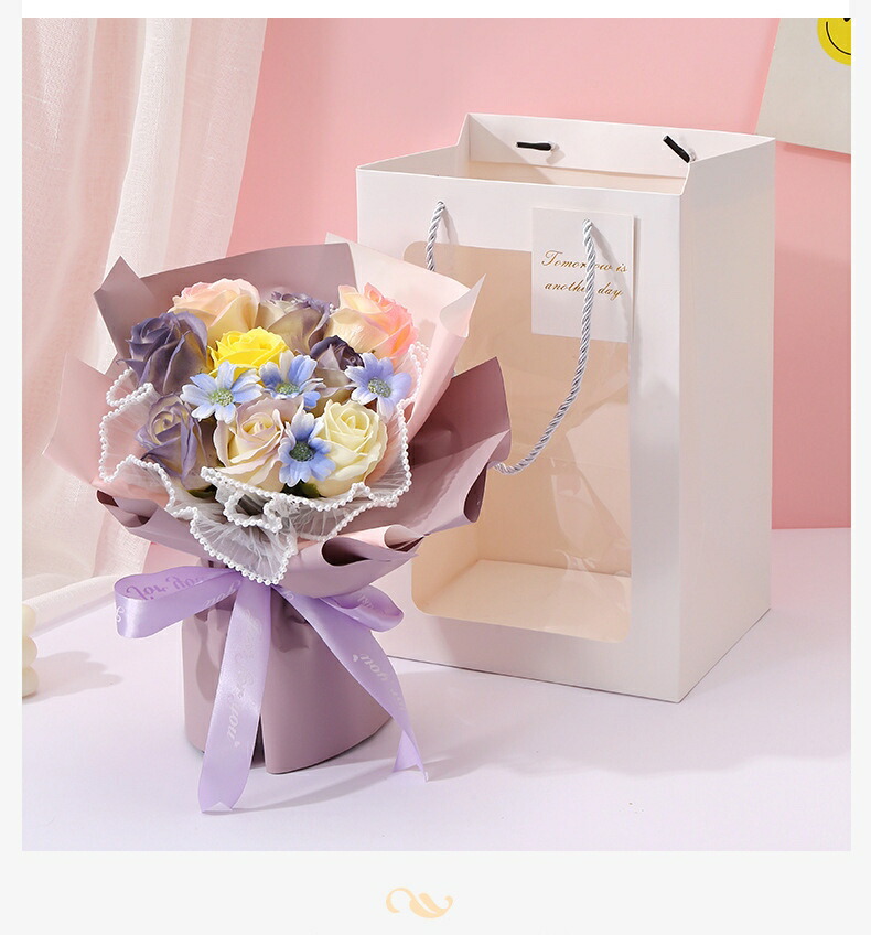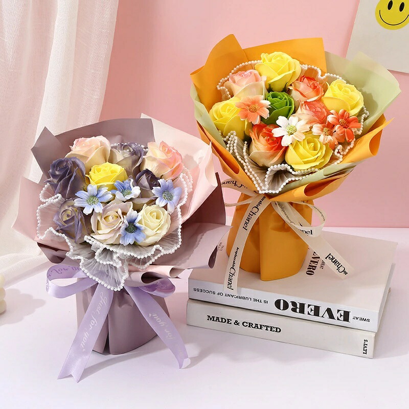 ブーケ シャボンフラワー ソープフラワ ピンク パープル グリーン オレンジ