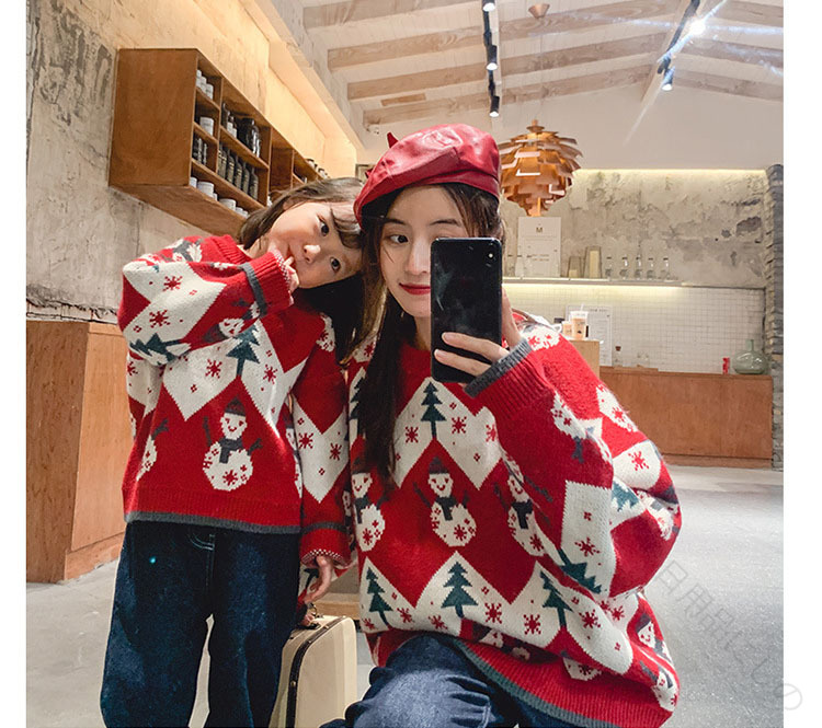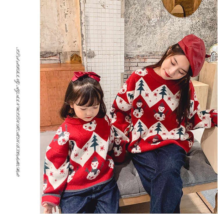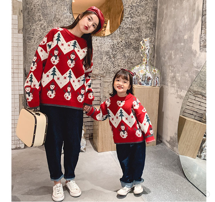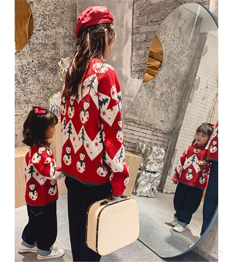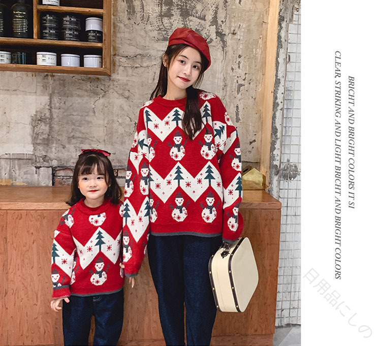 クリスマス セーター 親子 親子ペア クリスマス衣装 リンクコーデ 親子セット 冬用 赤ニットセーター 雪だるま柄 男女 おそろい 子供服 家族お揃い プレゼント キッズ 女の子 母 息子 ママ パパ
