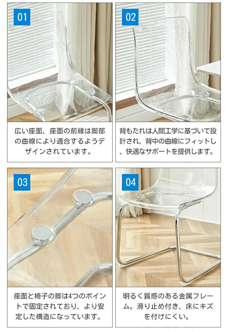 ダイニングチェア 北欧風 アクリル製 クリアチェア 背もたれ椅子 チェア 透明椅子 アクリルイス シンプル モダン 透明イス 厚み 滑り止めゴムパッド 人体工学 スタッキングスツール 強力な耐荷重性