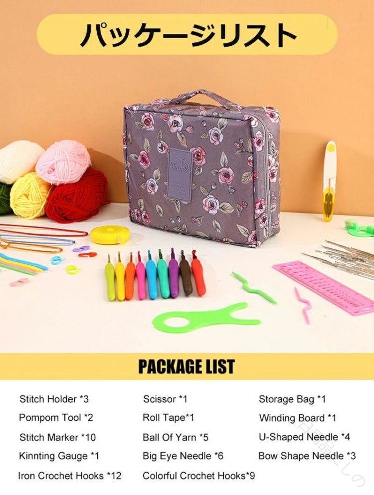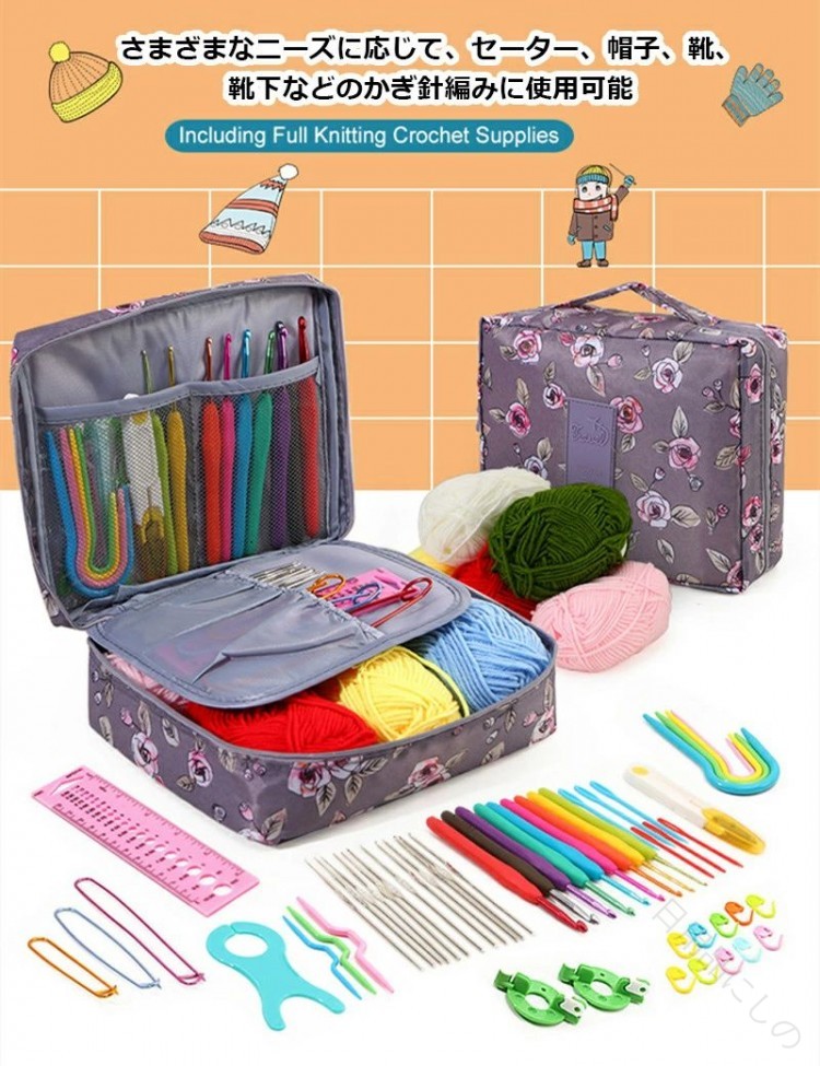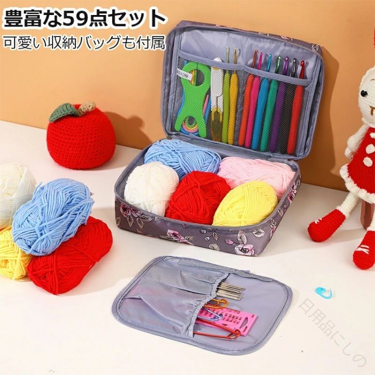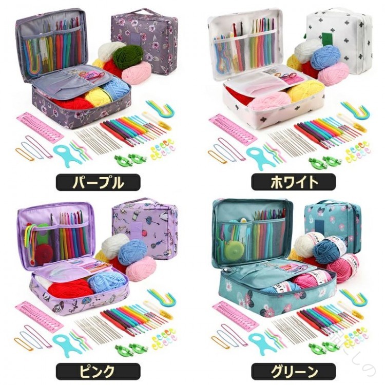 かぎ編み初心者キット 59 PCS 裁 手芸 クラフト 生地 手芸材料セット 続々入荷中 パープル ホワイト ピンク グリーン