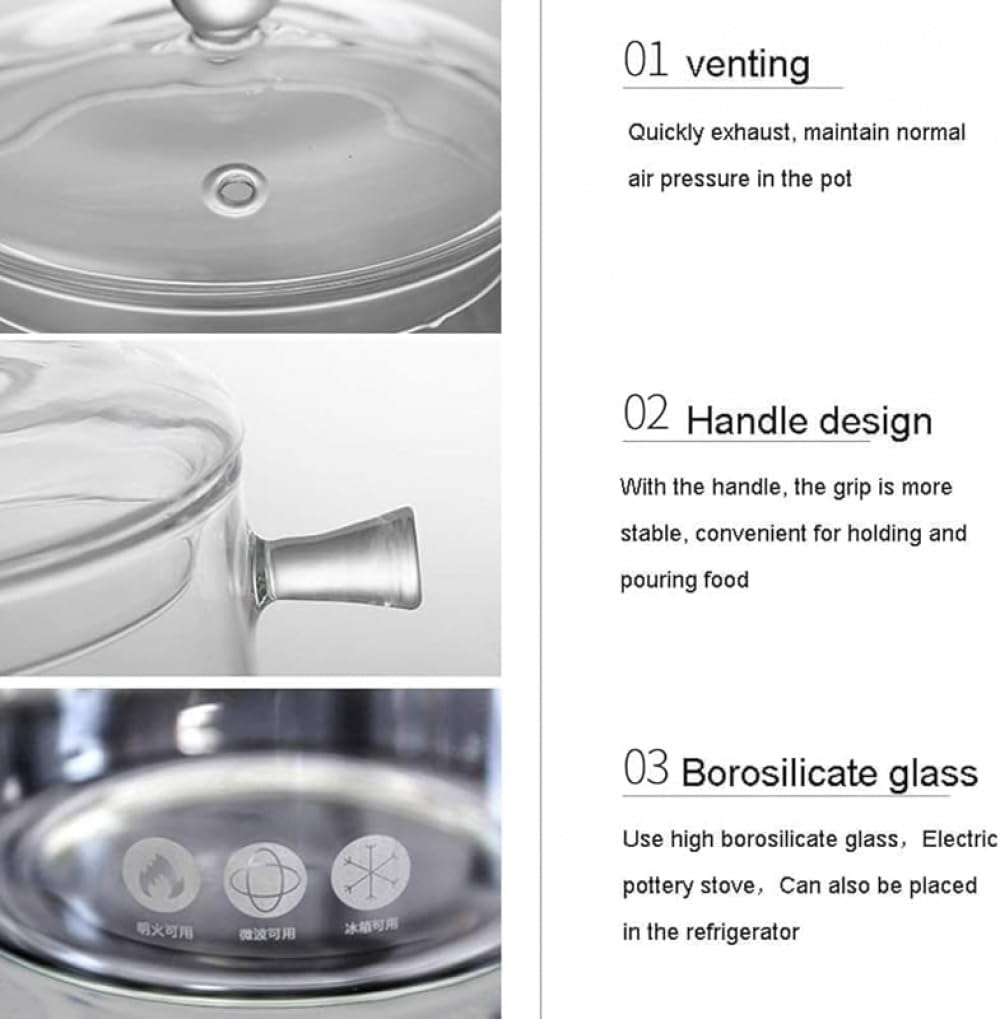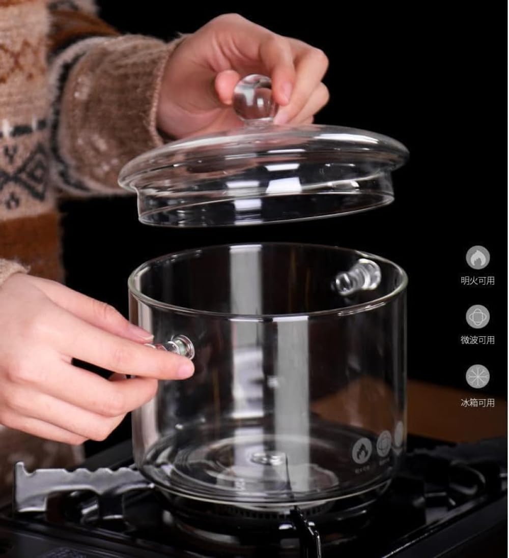 耐熱ガラス透明鍋:IH 直火 電子レンジ対応 寸胴両手鍋で家庭料理からホットワインまで円滑調理収納用品