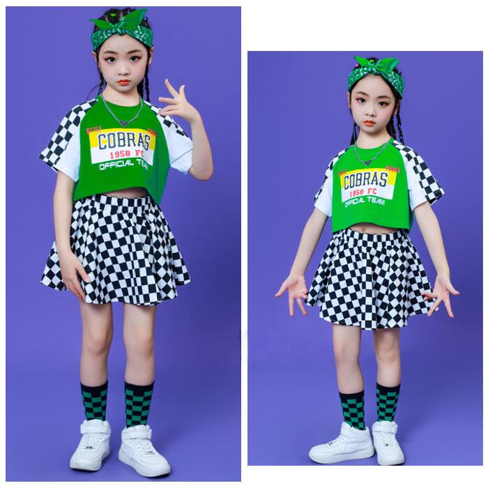 ダンス衣装 舞台 子供用 チェック柄 スカート 衣装 キッズダンス衣装 長袖 女の子 応援団 団体服 演出服 ファッション 派手 体育祭 文化祭 学園祭 お洒落 個性 110 白黒チェックのスカート