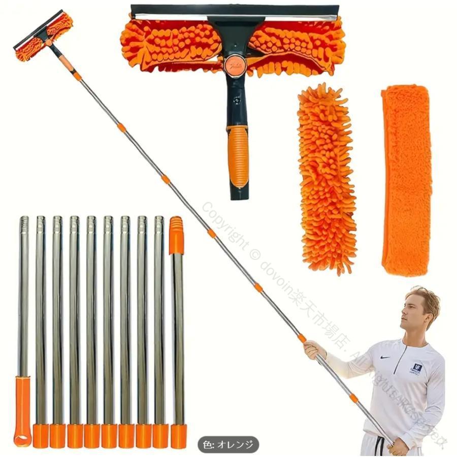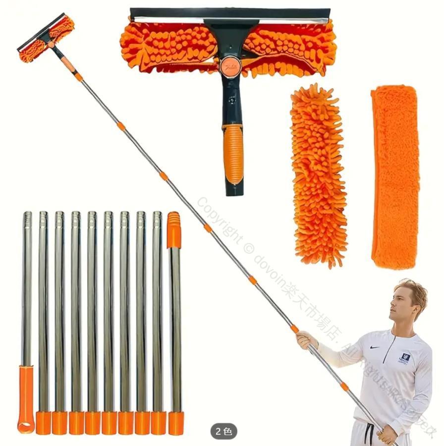 窓 洗浄 スキージ & ダスター セッ ライトブルー オレンジ