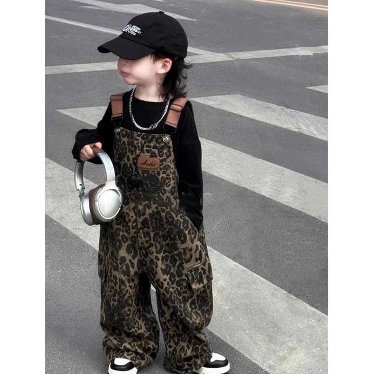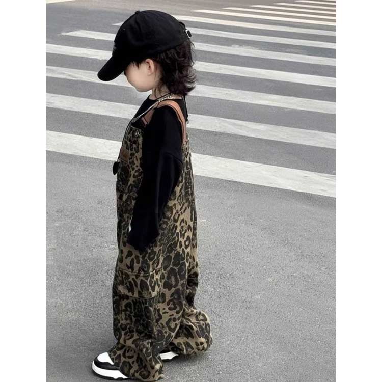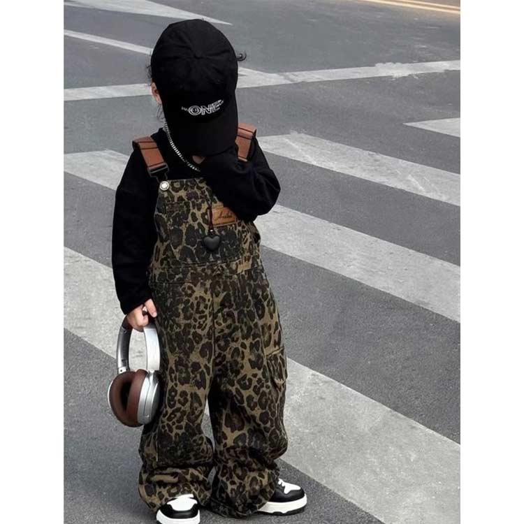 キッズ 子供 女の子 男の子 オーバーオール ヒョウ柄 レオパード ミリタリー カーゴパンツ ワイドパンツ サロペットパンツ