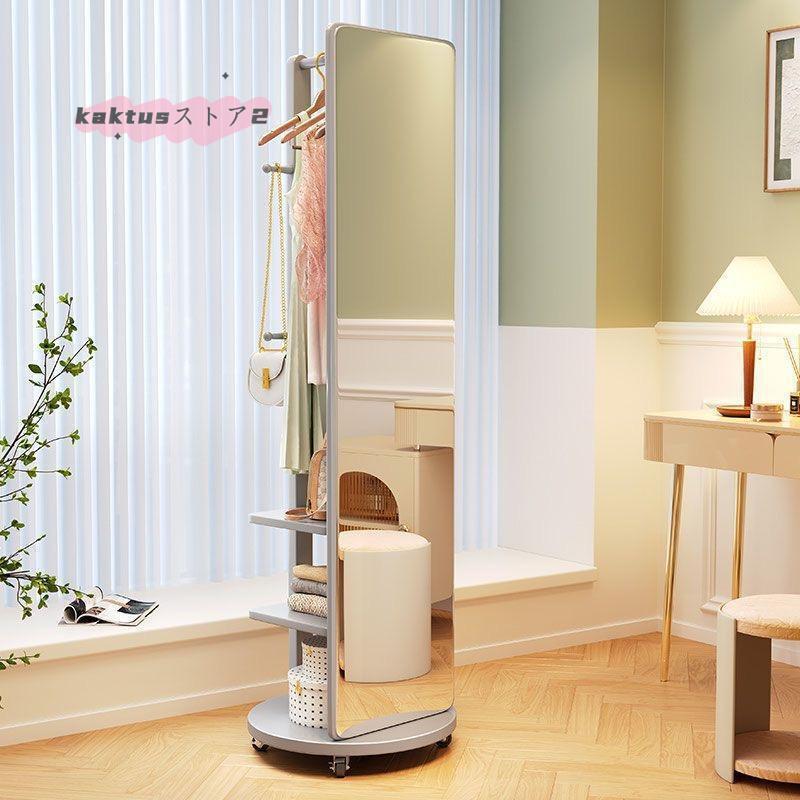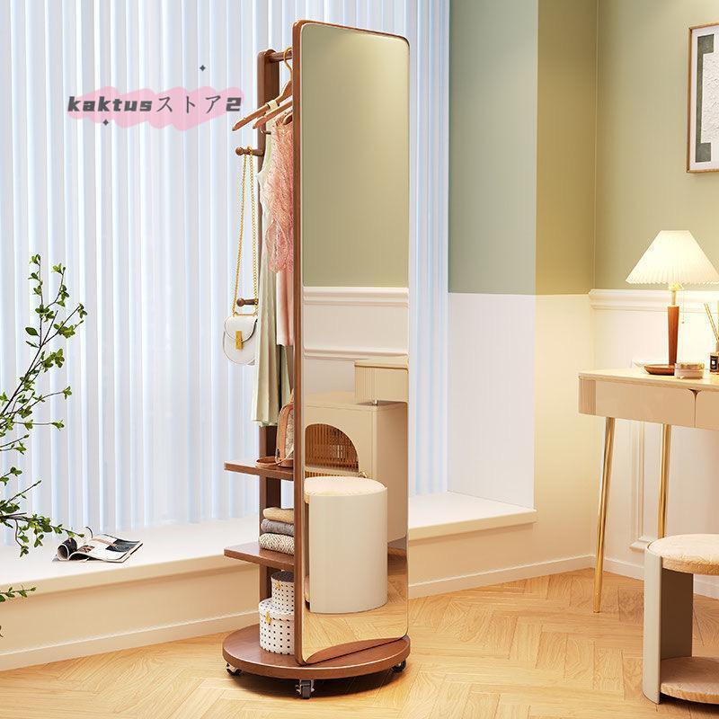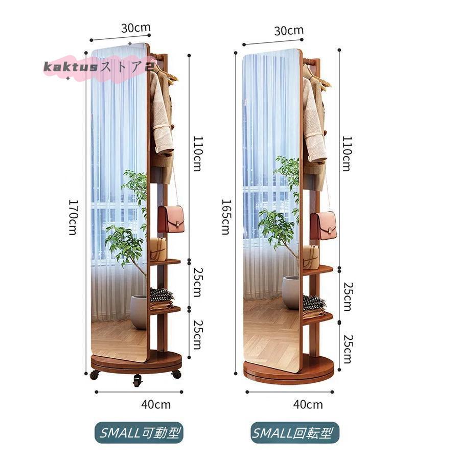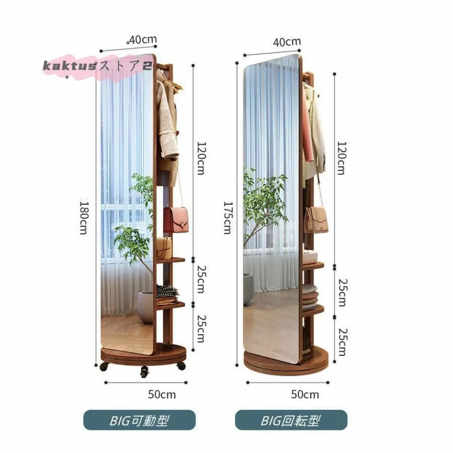 360度回転ミラー 全身鏡 収納 姿見 木色 クルミ色 ホワイト グレー 回転のみタイプ:30CM*165CM*40CM 移動回転タイプ:30CM*170CM*40CM 回転のみタイプ:40CM*175CM*50CM 移動回転タイプ:40CM*180CM*50CM