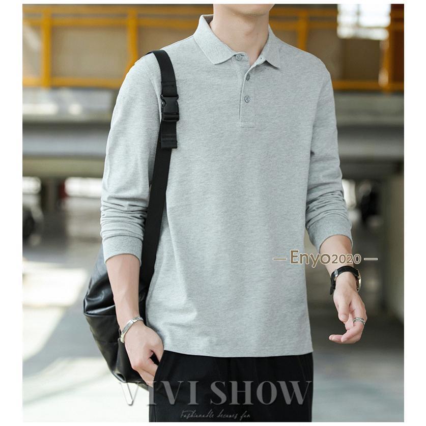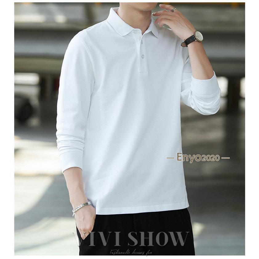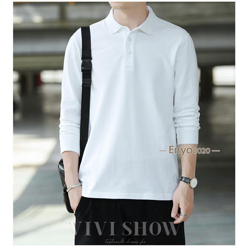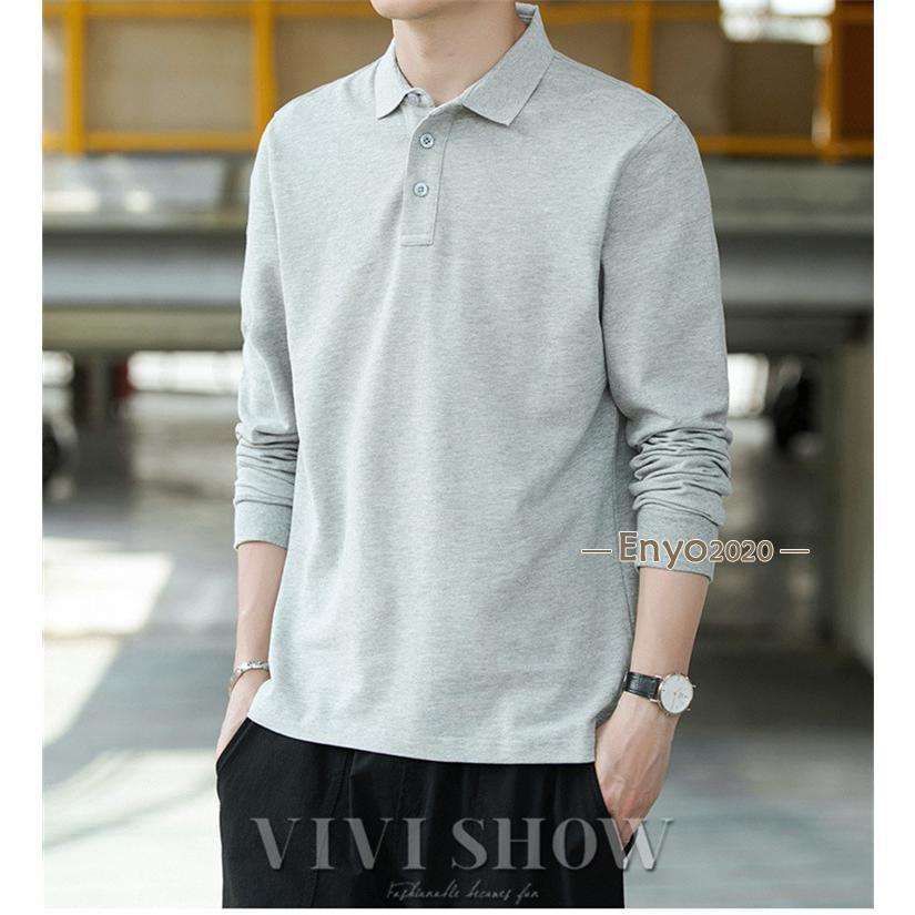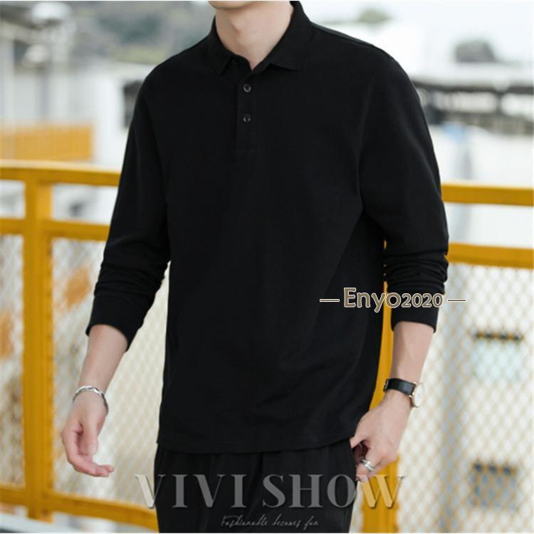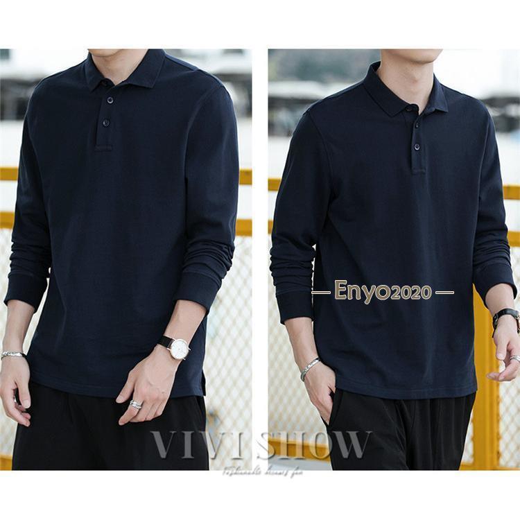 メンズ ポロシャツ 長袖ビジネス 胸ポケット付き 長袖ポロシャツ 無地 トップスその他 ポロシャツ長袖
