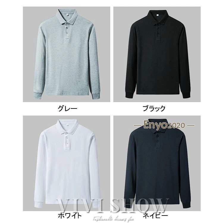 メンズ ポロシャツ 長袖ビジネス 胸ポ ゴルフ その他 通販 グレー ブラック ホワイト ネイビー M L XL 2XL 3XL 4XL