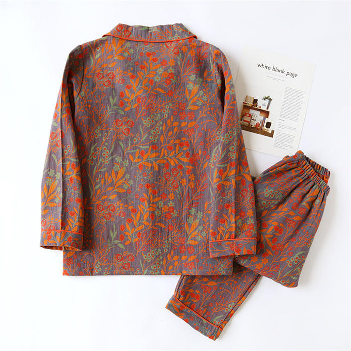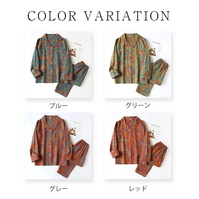 ガーゼ パジャマ レディース 花柄 総 インナー 下着 ナイトウエア 特集 ブルー グリーン グレー レッド M L XL