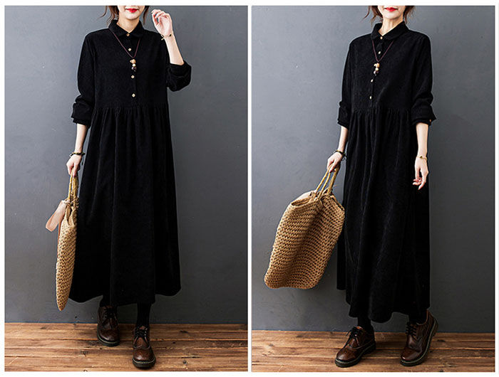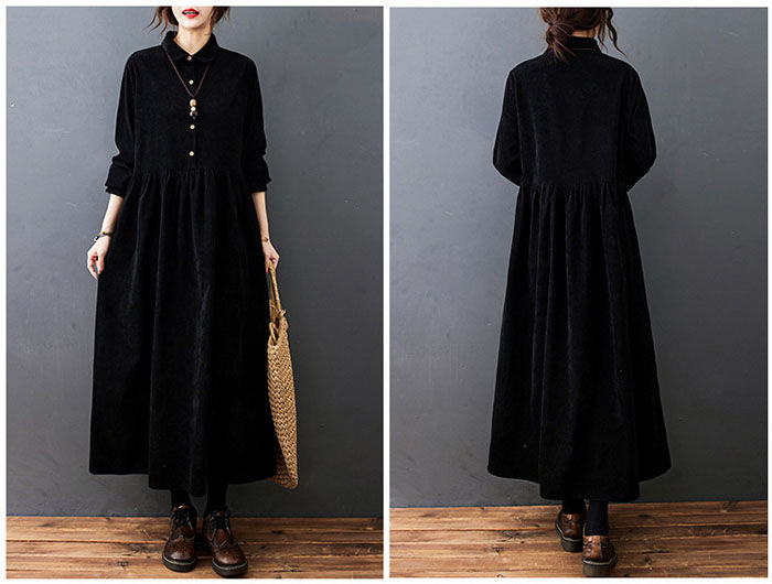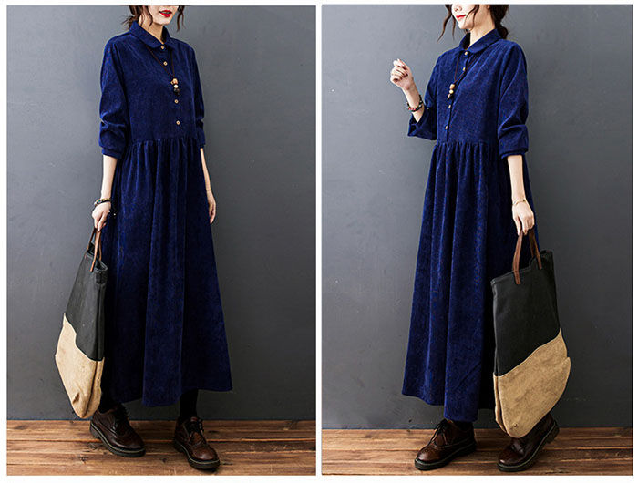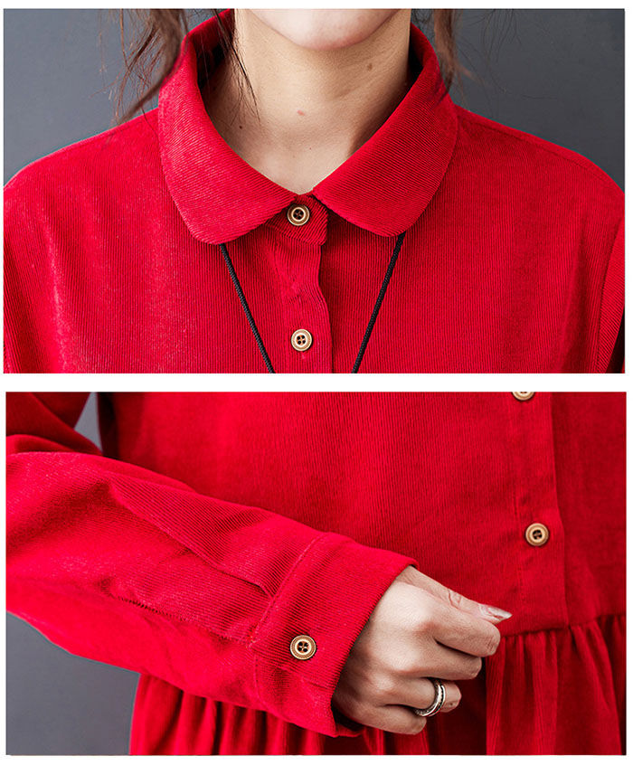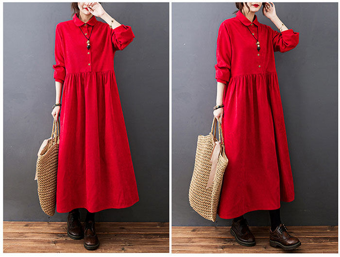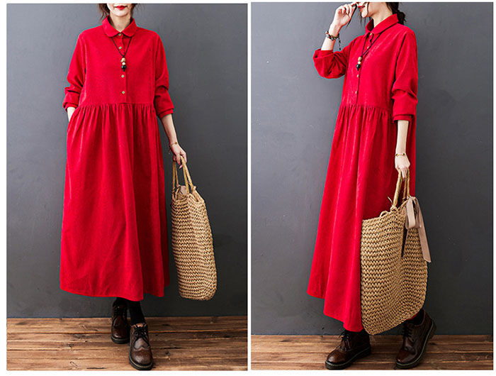 コーデュロイ ワンピース 春 秋冬 き ワンピース 続々登場 レッド ブラック ネイビー M L XL 2XL
