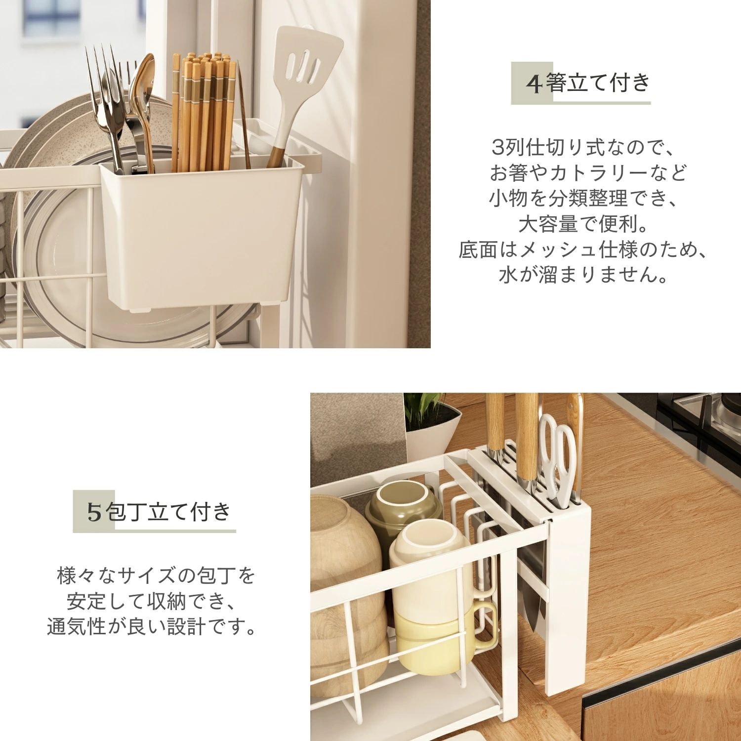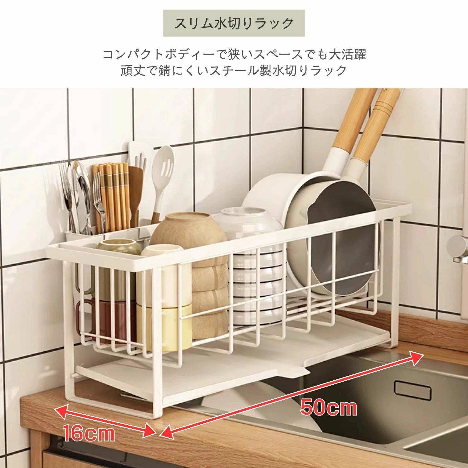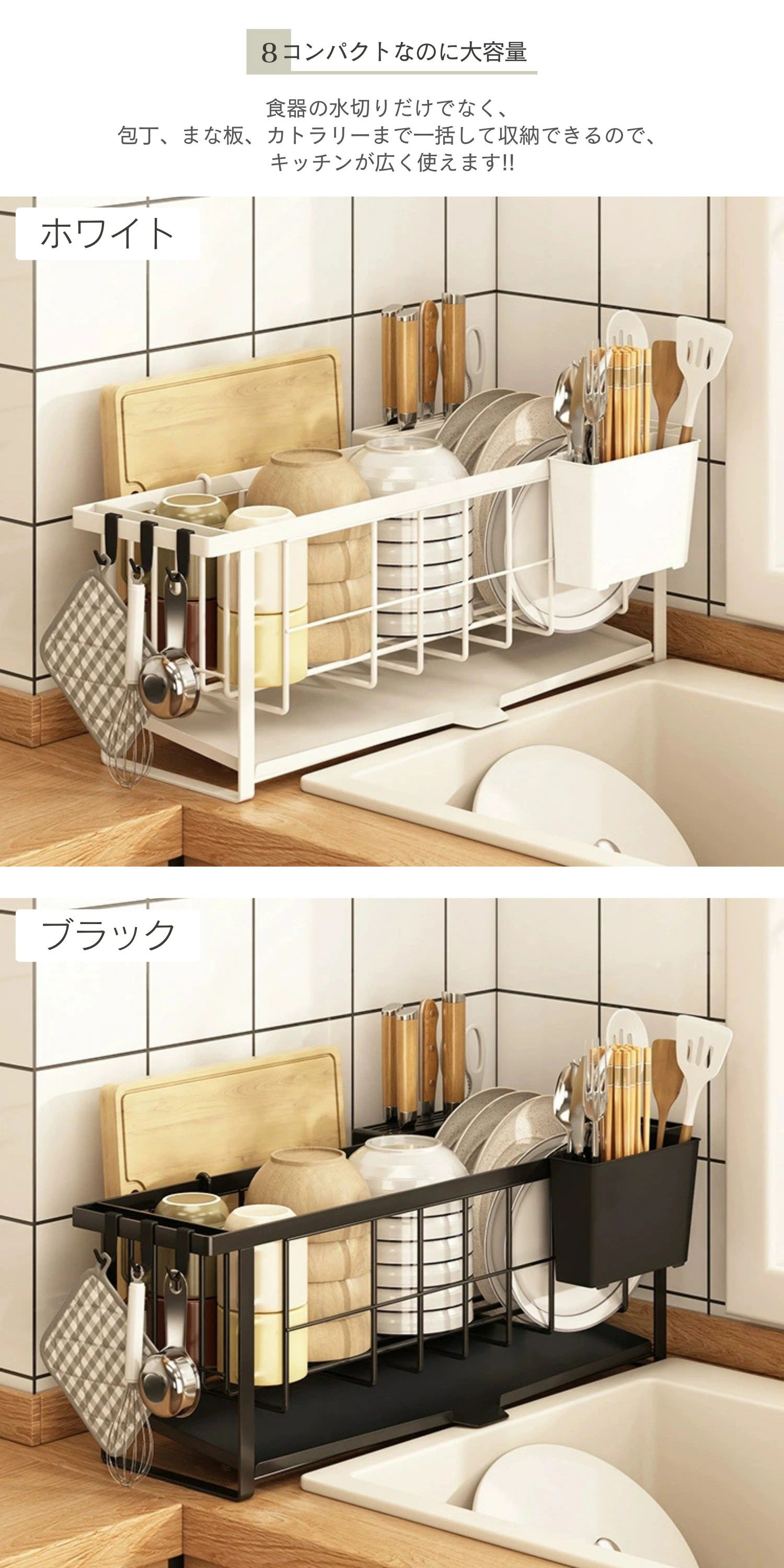 水切りラック スリム 5点セット 奥行 キッチン用品 食器 調理器具 新登場! ホワイト ブラック