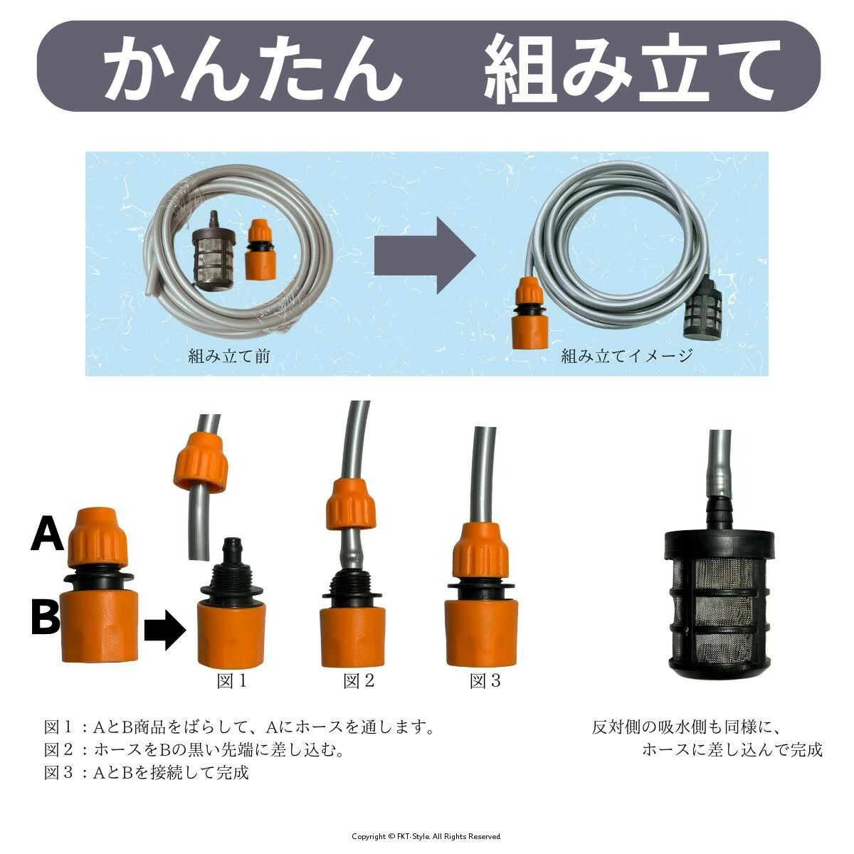 【自吸用ホース】タンクやバケツからの水を簡単に吸い上げることができるので、手間を省きます