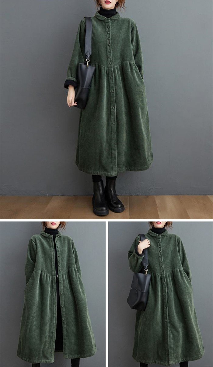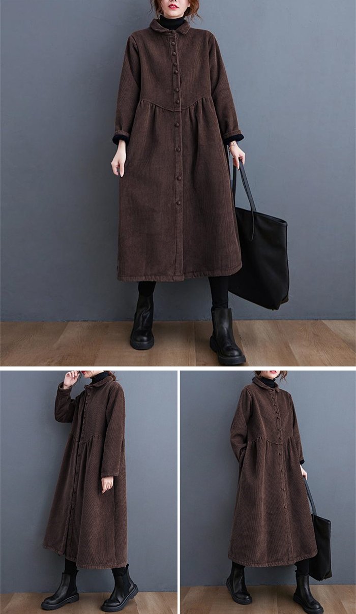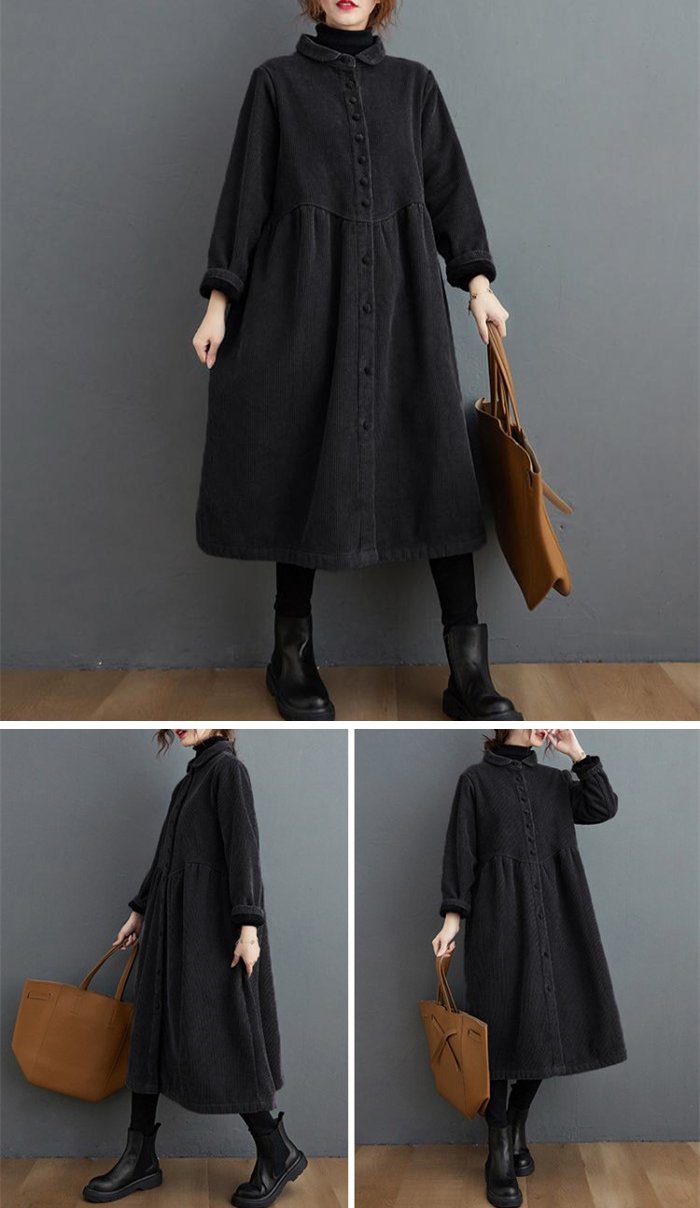 裏起毛 コーデュロイ ワンピース 秋冬 ワンピース 続々登場 コーヒー色 黒 キャメル ダークグリーン M L XL 2XL