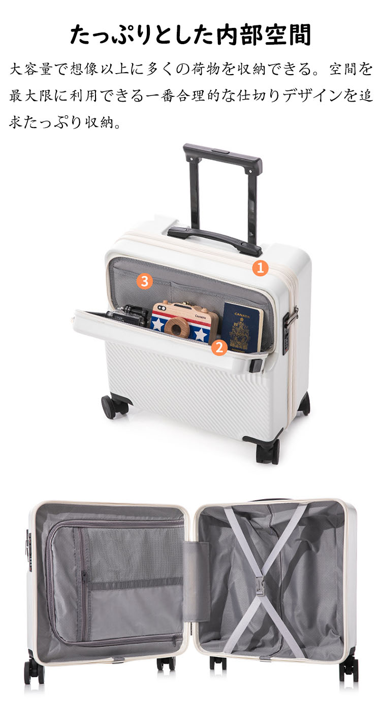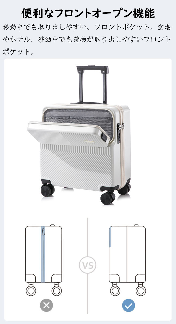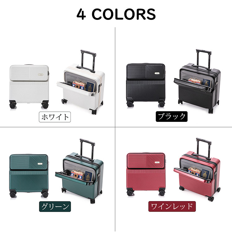 スーツケース フロントオープン 前開き バッグ スーツケース キャリーバッグ 人気 ホワイト ブラック グリーン ワインレッド SS(18inch) S(20inch)