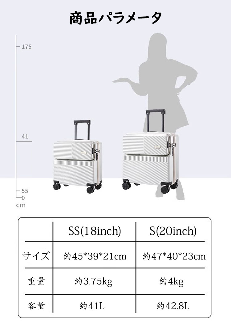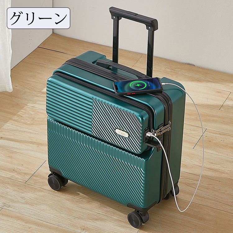 スーツケース フロントオープン 前開き仕様 USBポート付き キャリーバッグ 機内持ち込み対応 SS Sサイズ 41L 42.8L 軽量 ダイヤル式ロック 国内海外旅行 出張 修学旅行用 3-5日用