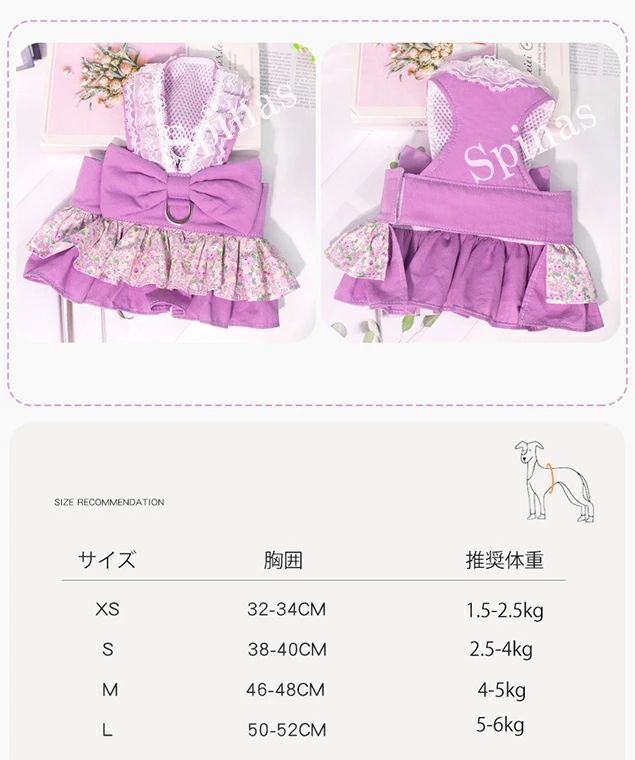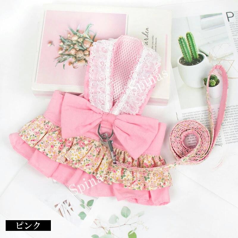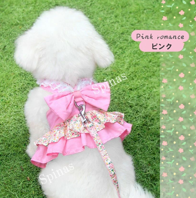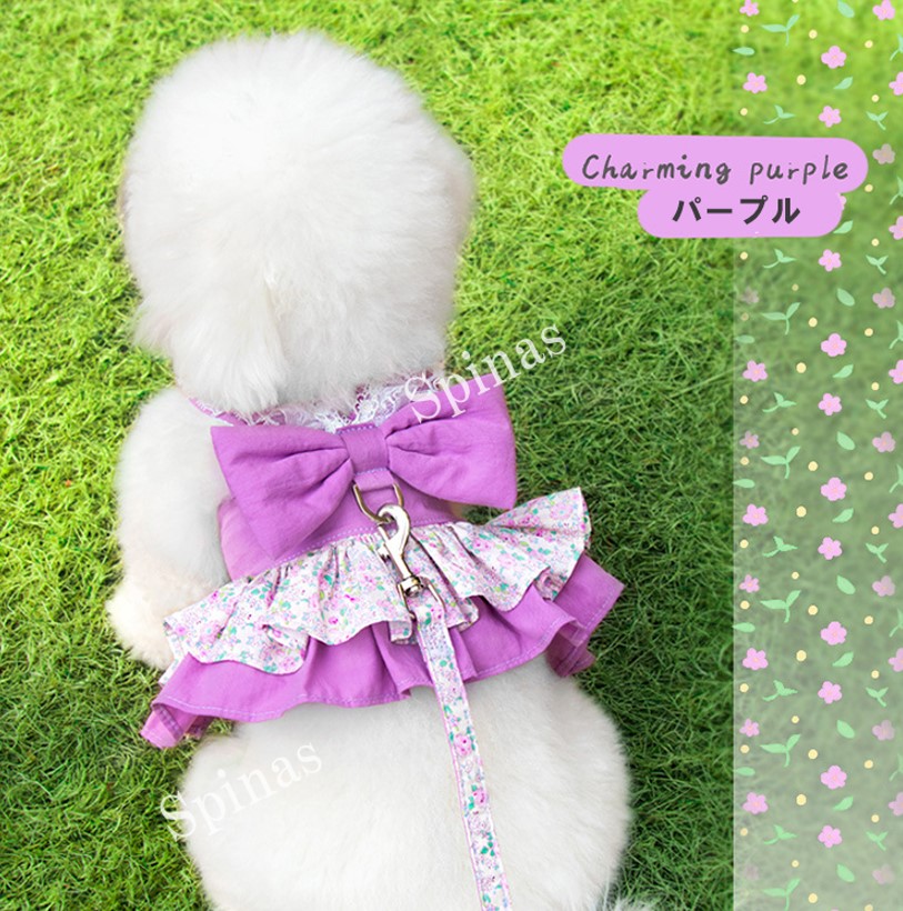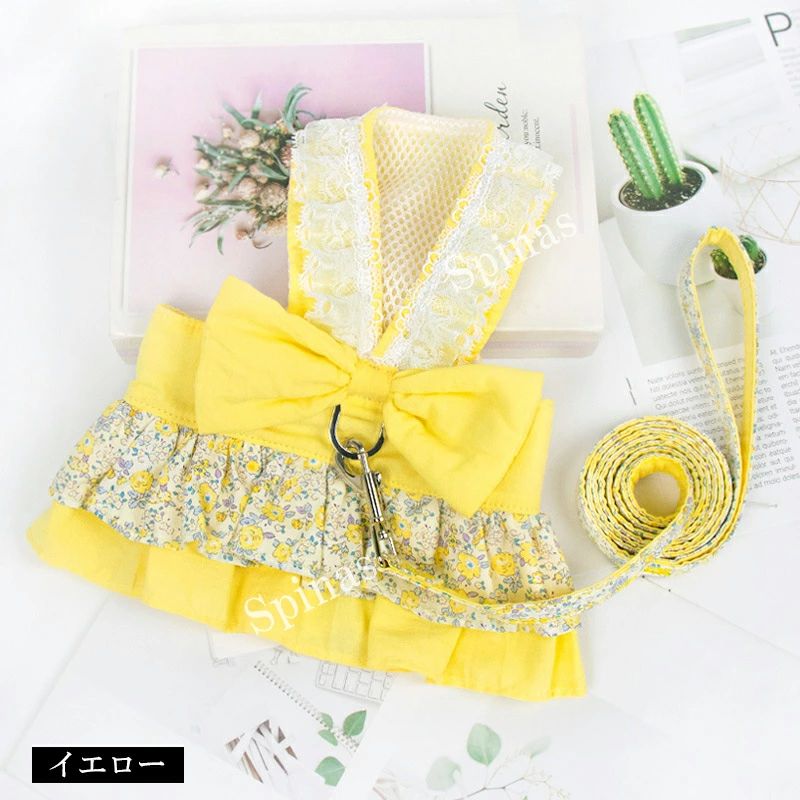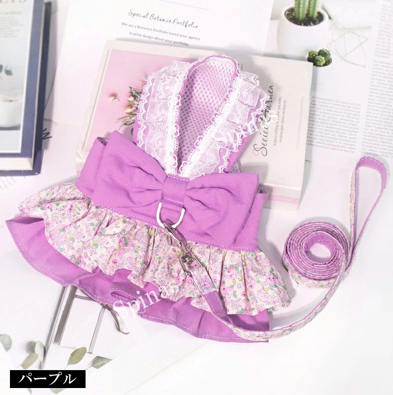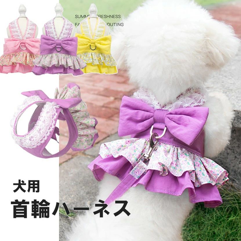 ふりふりな作りで可愛いがつまったハーネ ペット ペットグッズ 人気 パープル イエロー ピンク XS S M L