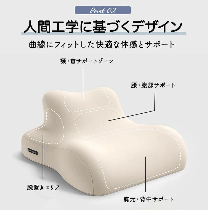 この商品は、人体工学に基づいた曲線デザインを採用しており、首・肩・背中を自然に支えることができます。美しいSラインフォルムは、見た目だけでなく、使う人の体に優しくフィットし、リラックスした姿勢をサポートします。デザイン性と機能性を両立させたこのアイテムが、あなたの日常をより快適にします。