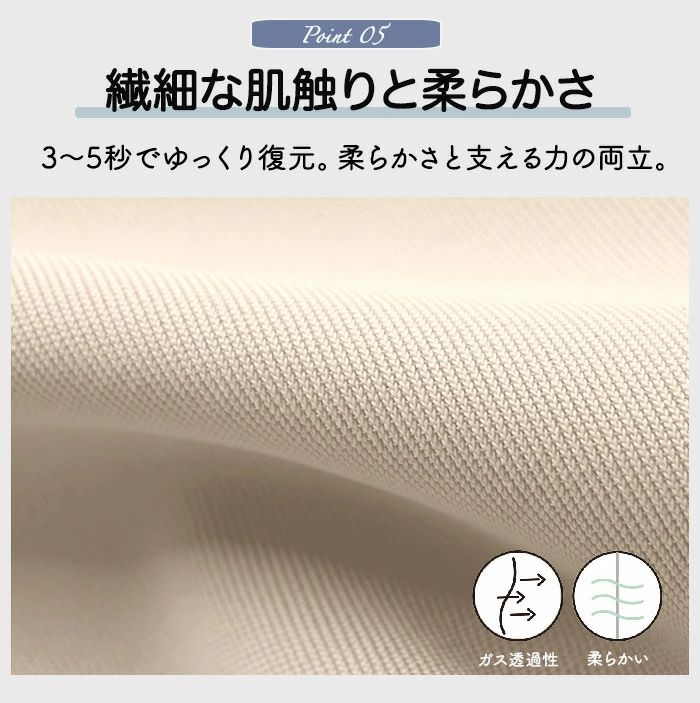 独自の低反発フォームを使用しており、体重がかかる部分にゆっくり沈み込みながら、しっかりと支えられる“もっちりとした質感”が特長です。まるで雲の上に寝ているかのような心地良さを実感でき、睡眠の質を向上させるとともに、リラックスできる空間を演出します。自宅でのくつろぎ時間が、より至福のものになること間違いなしです!