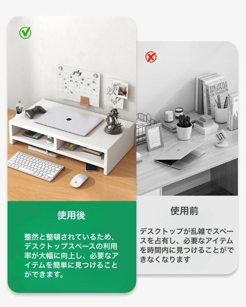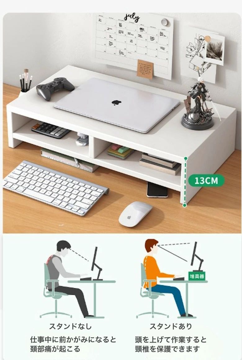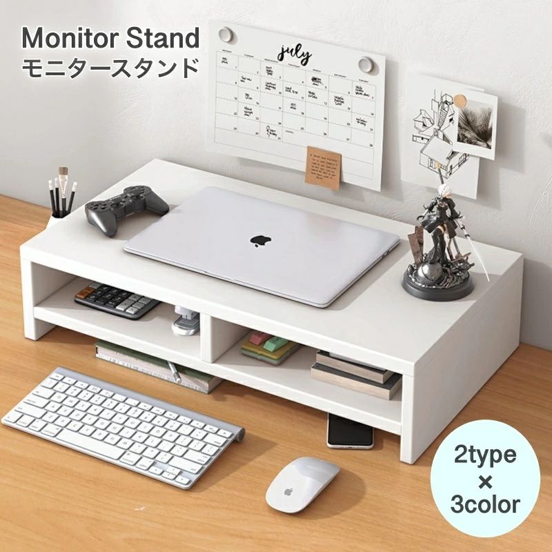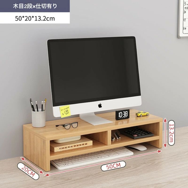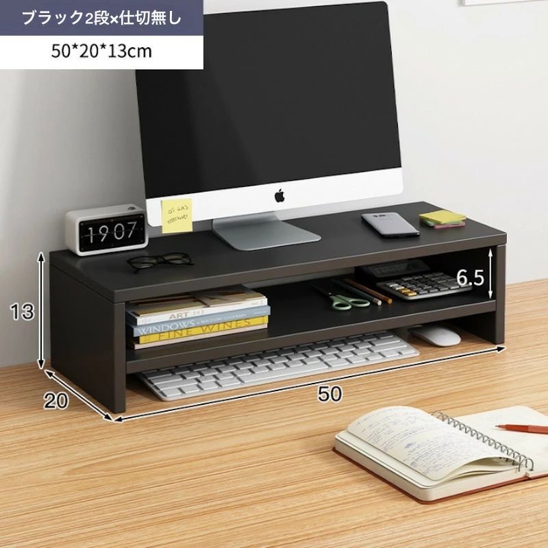 モニタースタンド モニター台 デスク上 ホワイト ブラック 木目 2段×仕切有り 2段×仕切無し