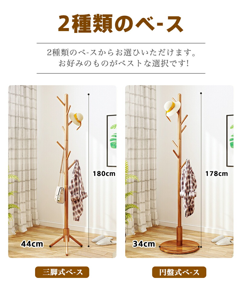 ポールハンガー コートハンガー ラック ナチュラル ウォールナット ホワイト パイン製三脚ベース パイン製円形ベース ブナ製三脚ベース ブナ製円形ベース