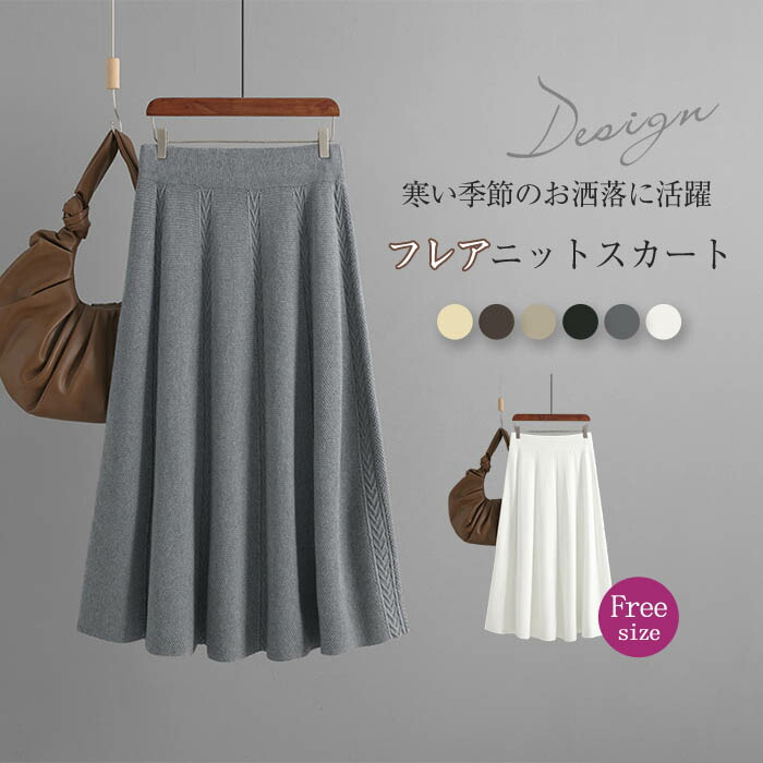 ニット フレアスカート レディース ニ レディースファッション 人気 グレージュ 黒 グレー 白 ライトベージュ コーヒー色