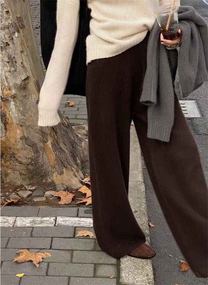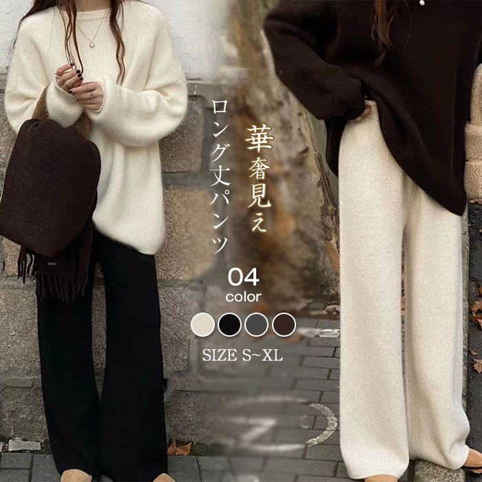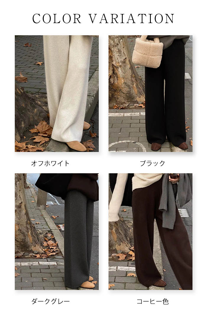 ニット ワイドパンツ レディース ニッ レディースファッション 超目玉商品 オフホワイト ブラック ダークグレー コーヒー色 S M L XL