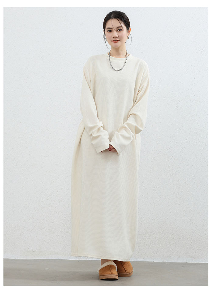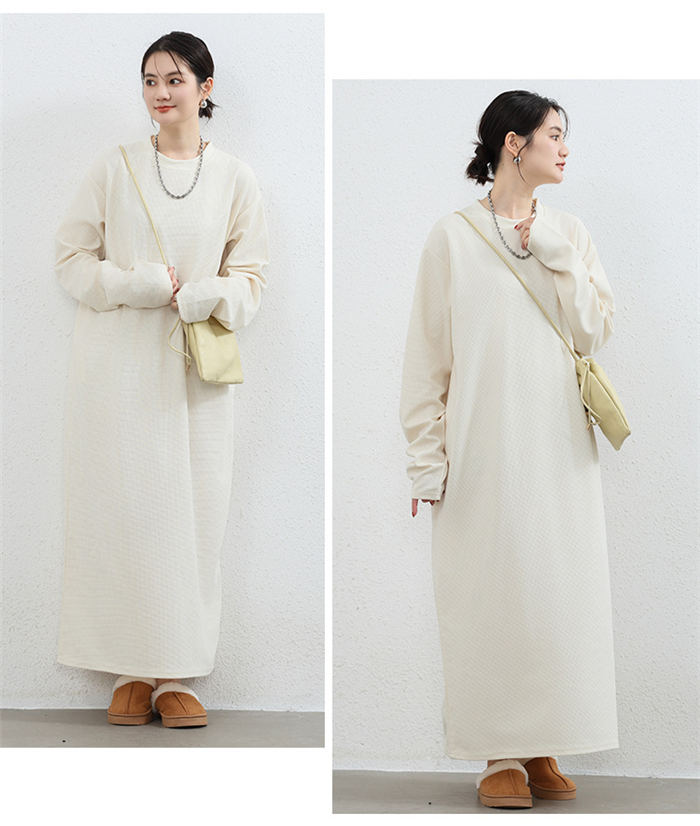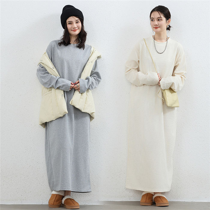 スウェットワンピース ワッフル レディ ワンピース 続々登場 オフホワイト ライトグレー ダークグレー