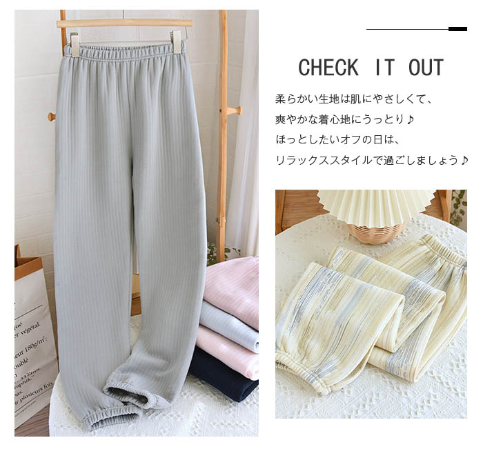 ルームウェア パンツ あったか レディ インナー 下着 ナイトウエア 早い者勝ち ブルーストライプ柄 紺色 ライトブルー ライトグレー ライトパープル ライトピンク M L XL