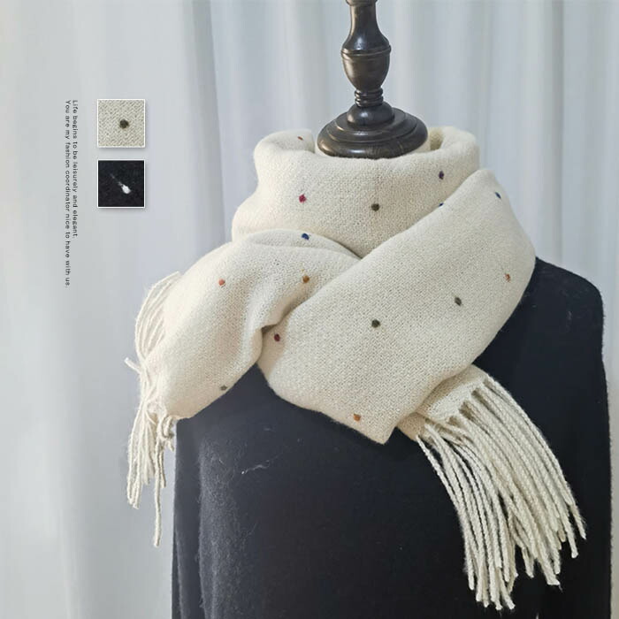 ドット ストール 大判 マフラー レデ マフラー スカーフ レディースマフラー ストール 特集 黒 ベージュ