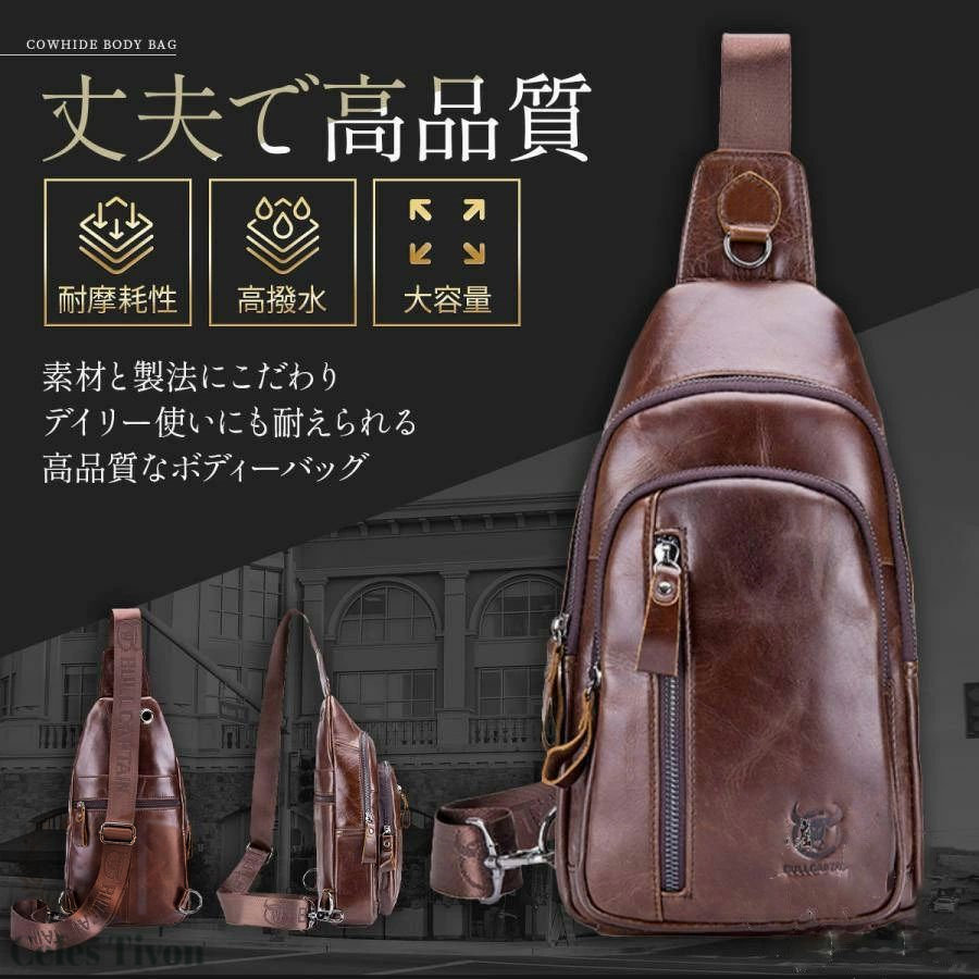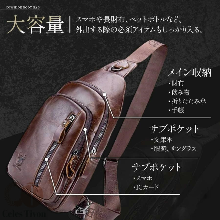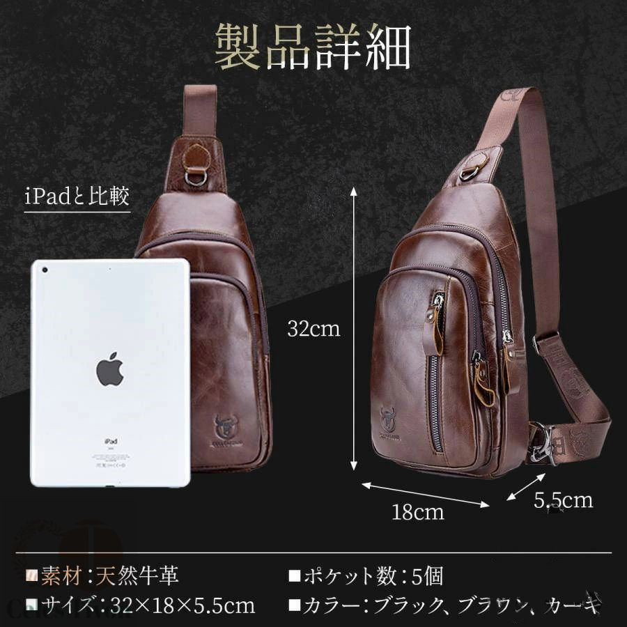 斜めがけ ワンショルダー 大きめ 牛革 バッグ メンズバッグ ボディバッグ ウエストポーチ 早い者勝ち ブラック ブラウン