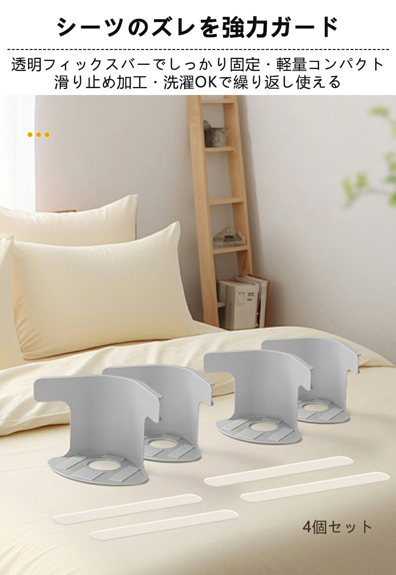 4個セット ベッドシーツクリップ 布団 インテリア 寝具 収納 新登場! ホワイト グレー