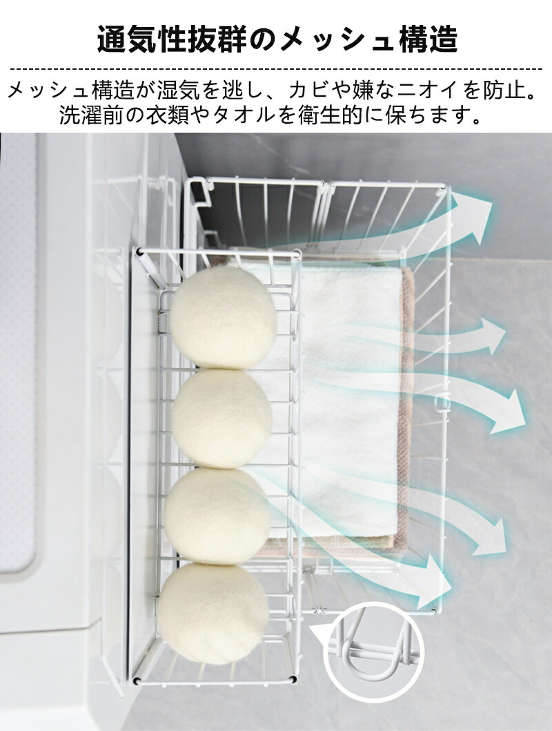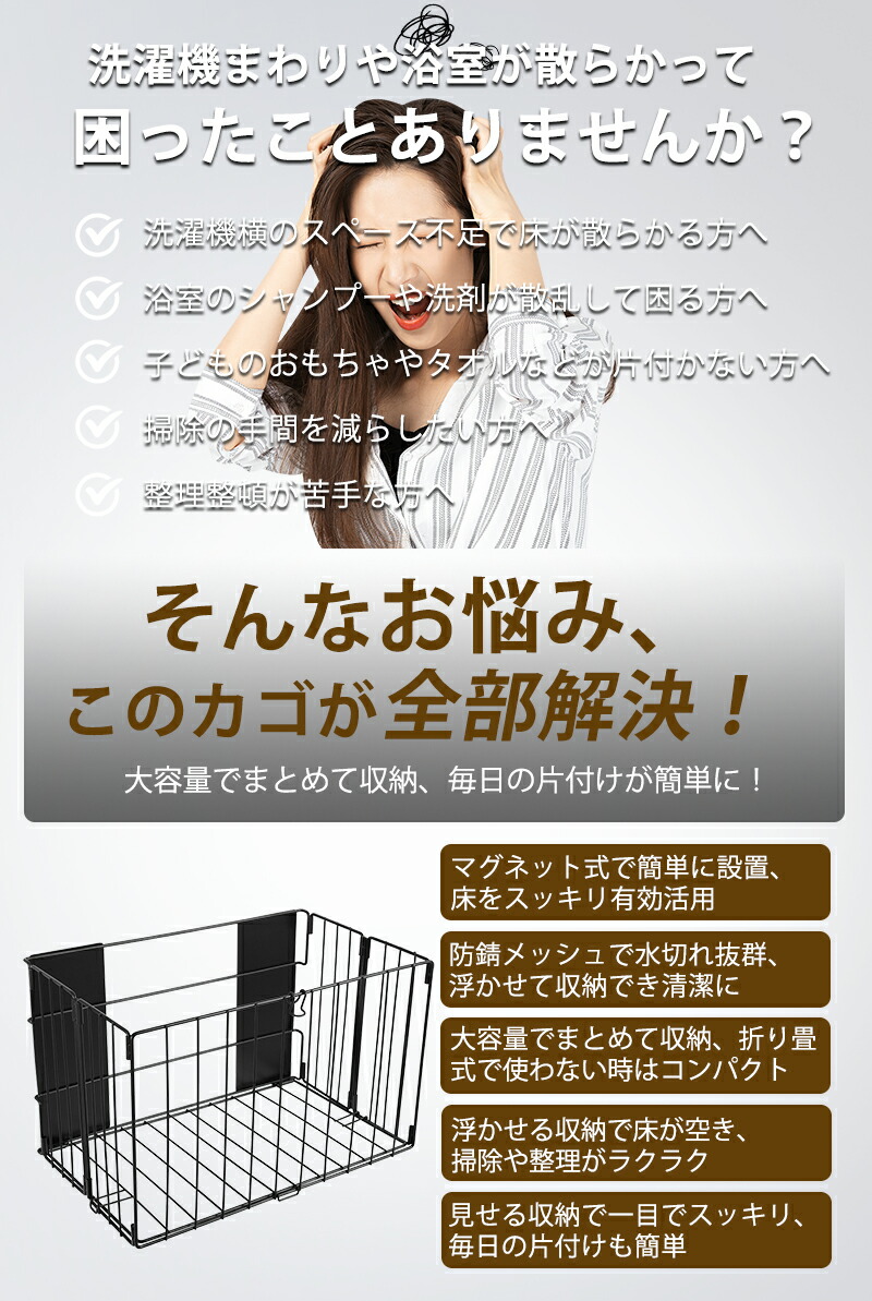 洗濯かご 折りたたみ 浴室ラック 洗濯機横 収納ボックス 隙間 ランドリーバスケット ラック 磁石 マグネット収納 バスルーム 洗濯物入れ 浮かせる収納 大容量 シャンプー 防錆 メッシュ おもちゃ