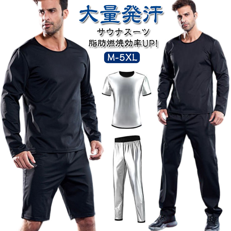 上下セット サウナ スーツ セットアップ tシャツ パンツ 発汗 サウナスーツ メンズ 長袖 半袖 ロングパンツ ショートパンツ 大きいサイズ 滝汗 インナー 加圧シャツ スポーツウェア 運動着 爆汗