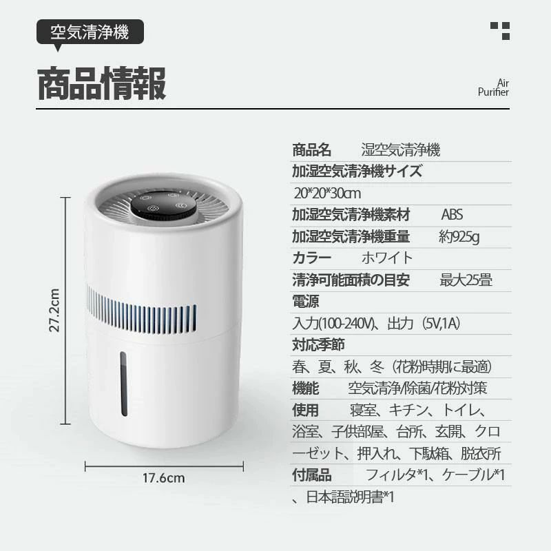 加湿器 空気清浄器 気化式 大容量 卓 不要 吸水フィルター
