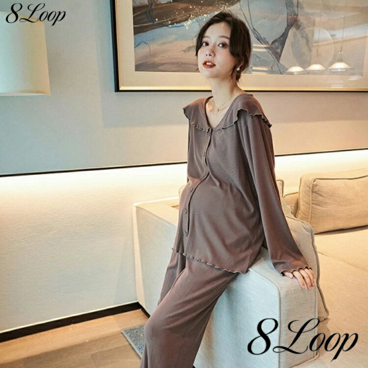 マタニティ 授乳 パジャマ 長袖 上下 マタニティ ママ 下着 パジャマ パジャマ ネグリジェ 人気 ベージュ コーヒー M L XL 2XL 3XL 4XL