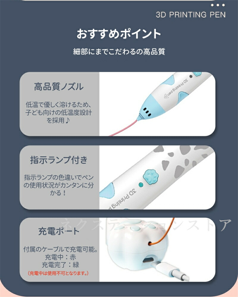3dペン 低温 充電式 3Dペン 子供 3Dアートペン 脳トレ 肉球 コードレス 5m×5色 PCLフィラメント DIY手作り 3dぺん フィラメント セット 大人 お絵描き おもちゃ 女の子 親子