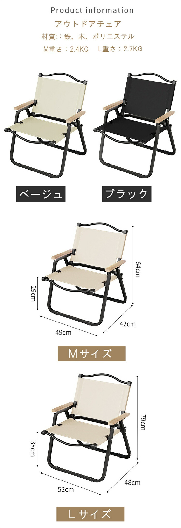 キャンプチェア アウトドア チェア 耐 アウトドア イス テーブル レジャーシート イス 豊富 ベージュ ブラック M L