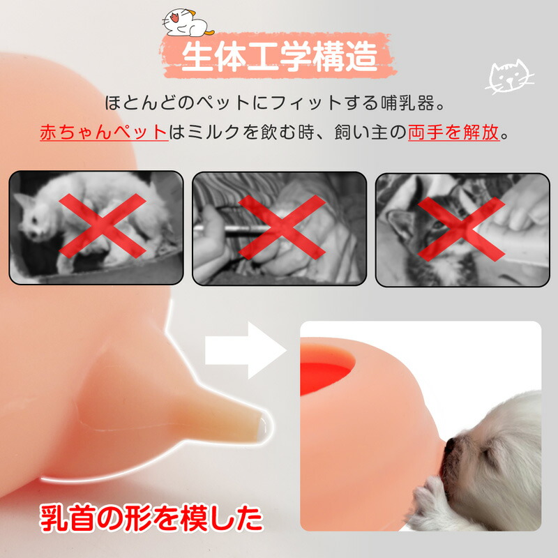 ペット哺乳器 哺乳器 細口乳首 ミルク ネコ イヌ ドッグ ペット 生体工学構造 子犬 子猫 授乳 子猫哺乳器 犬用哺乳用品 哺乳瓶 水飲み 水飲み器 ペット介護 哺乳用品 使いやすい 給水器